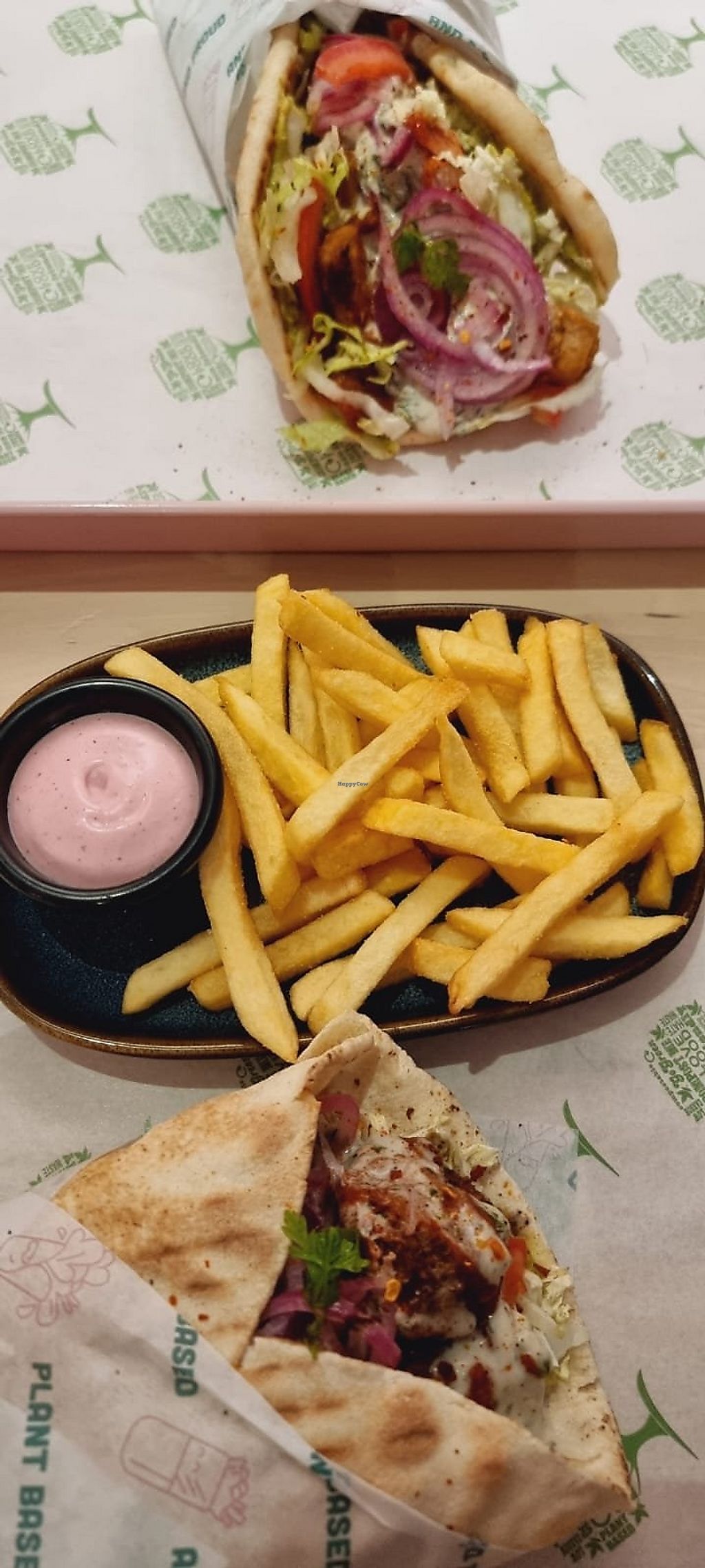 All vegan, with a lot of options! We had two Kebap Gyros, fries and the shrimp. Everything was good but the fries could have been crispier.