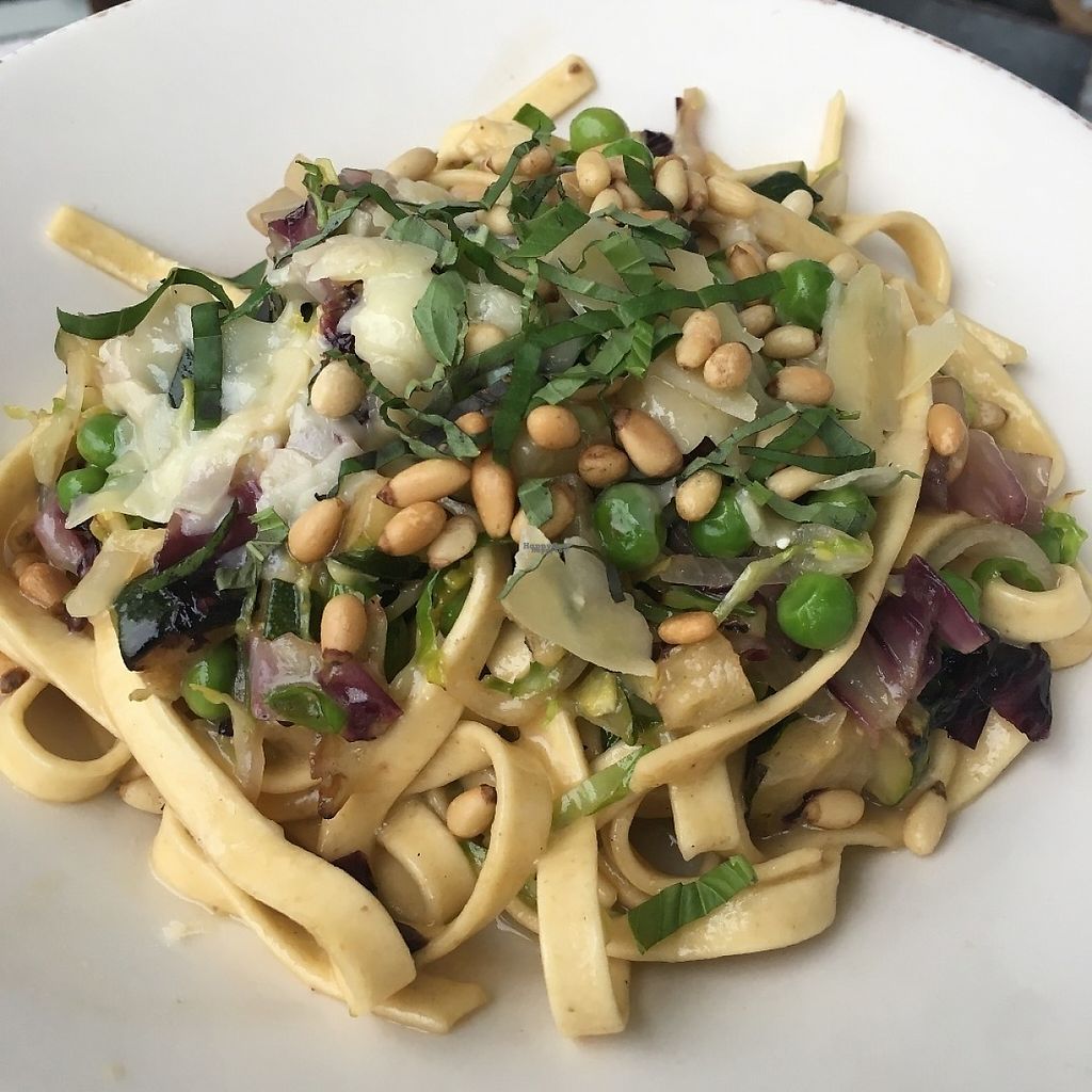 Flatbread with veggies and tree line nut cheese.