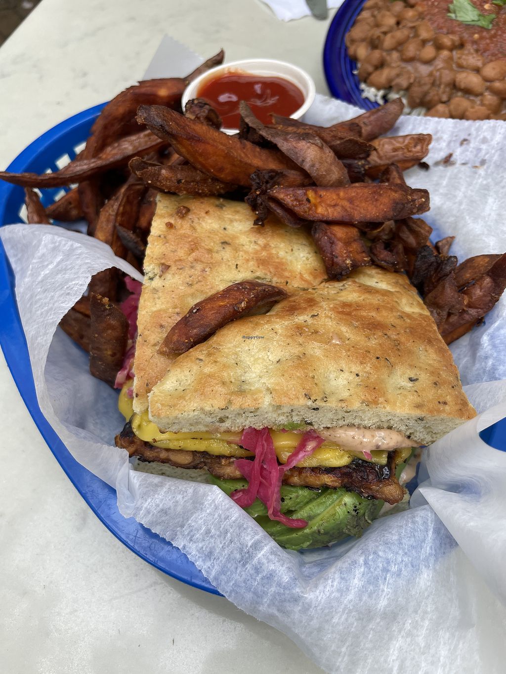 Chili cheeze fries and the tofu avocado sandwich. Delicious !