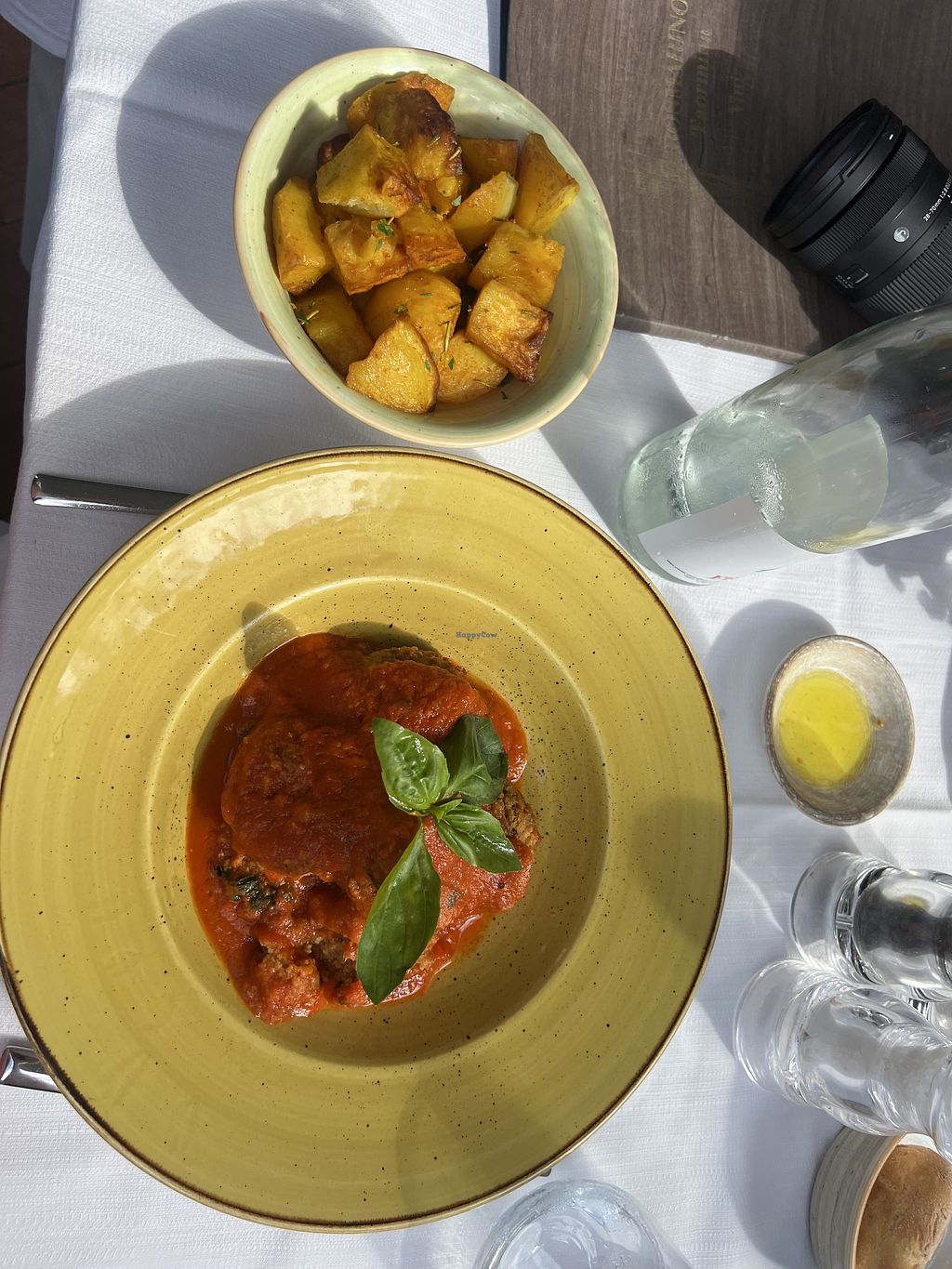 Read moreThe menu had both starters, firsts and mains with vegan options and I opted for the Sicilians balls with roasted potatos paired with a glass of red wine. The wine menu was marked with a few vegan options.