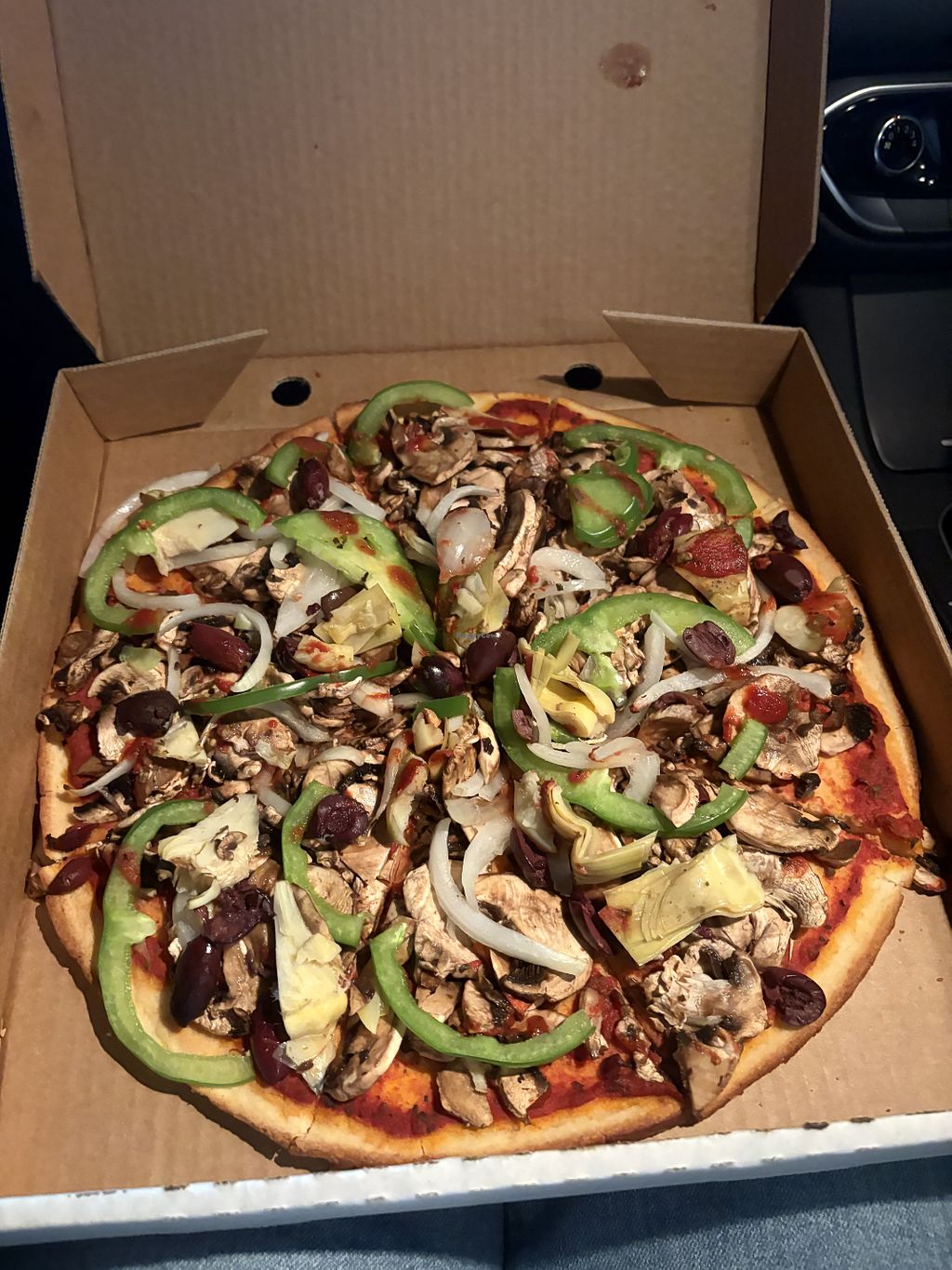 The staff was friendly. We came late at night after a movie. No vegan cheese available but he was happy to make me a pizza with any ingredients. I chose vegetarian minus cheese plus artichoke and they didn’t scrimp on the toppings. Also had gluten free base available which was a great texture. Was cooked well and not sloppy.