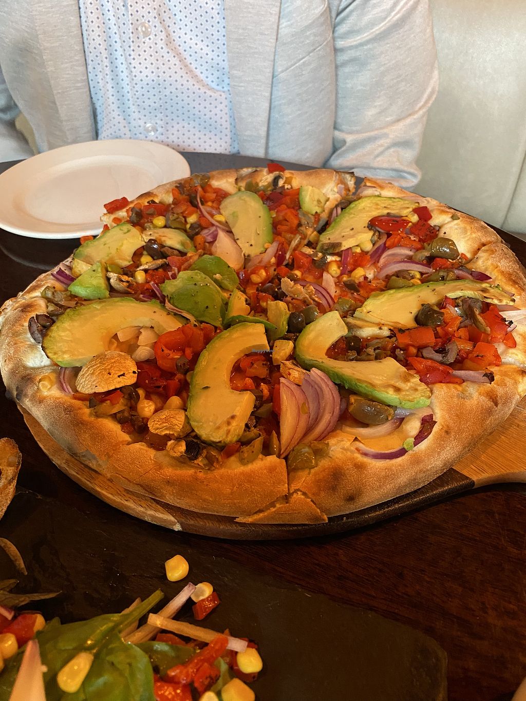 Food was incredible! They have a separate vegan/vegetarian menu and it’s out of this world. The bruschetta is delicious and the pizza *chef’s kiss! They have Heineken zero, too, if you’re alcohol free like us!