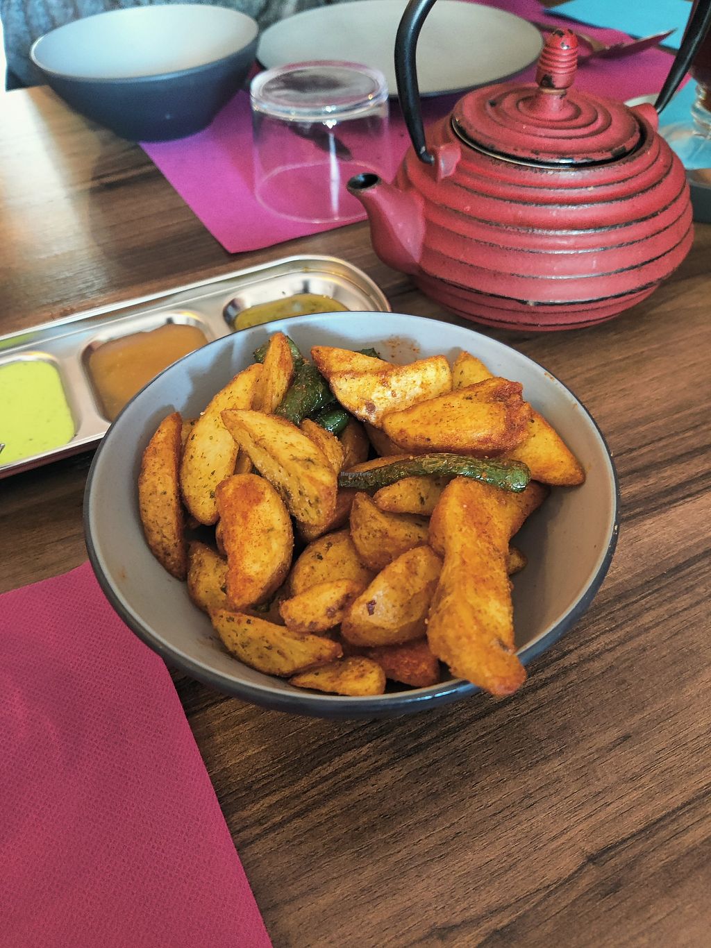 Curries are great but although vegan items are labelled some might contain milk (i.e. one sauce that comes with the fries) and even though we clearly stated we were vegan they brought it unexpectedly.