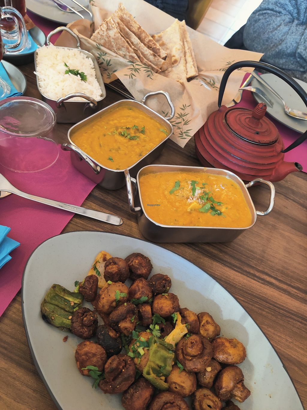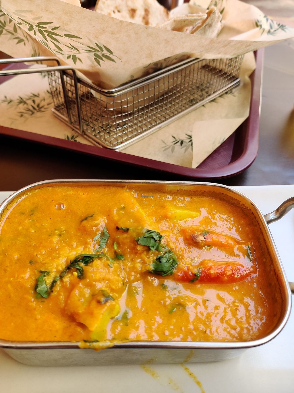 The food is delicious. However I asked if the naan bread was vegan (it isn't marked vegan but I thought I'd ask) I was assured they could make it vegan. I went twice. Two different waitresses assured me they could make it vegan. It was only after eating it and asked for more that they told me it wasn't vegan. They told me they didn't put butter on the top but it still