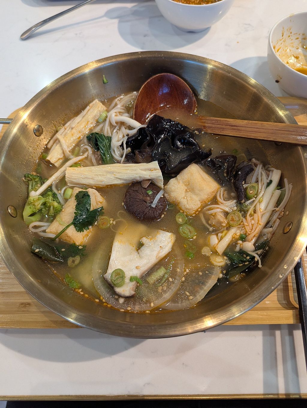 I loved filling my bowl with all the ingredients I wanted for my hot pot. It was really reasonably priced and you get access to make your own complimentary sauce to go with your broth too and a dessert section but I wasn't sure what was vegan or not so gave it a miss.