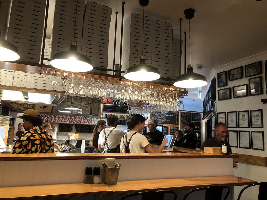 We ate here 2 nights during our 4 night stay The pizzas are delicious - with vegan cheese option and loaded with veg. The service is 5 star - friendly, efficient and a really happy vibe. We booked the same table inside to keep warm and were greeted with a sign with our name and smiley face on our table. They were extremely busy and on Friday night they let us know there might be a delay with a 14 takeaway pizza order just before we ordered. But then we were amazed by their team’s efficiency - we were watching 8 cheerful staff working in sync in getting our pizzas on our table immediately after we’d relaxed with a couple of wines. It’s BYO with no corkage charge and you can also buy wine and beer there.