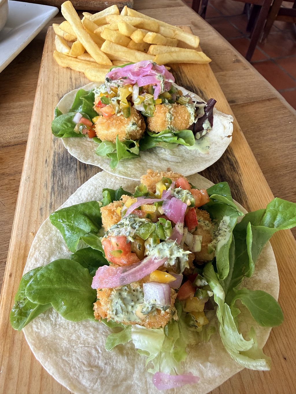 Firstly the food was delicious, there were 3 vegan option to choose from we had the Tofu Tacos with additional Bajen sweet potatoes and a side of hummus with plantain.