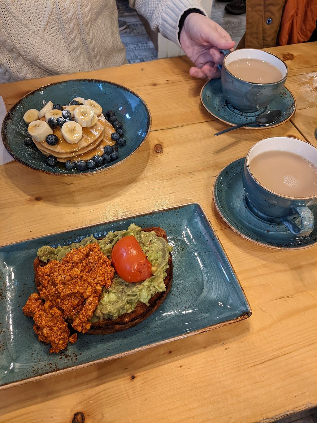 I enjoyed their oat latte and a very filling vegan pancake stack with blueberries, maple syrup and vegan cream. Friendly service and laidback atmosphere too.