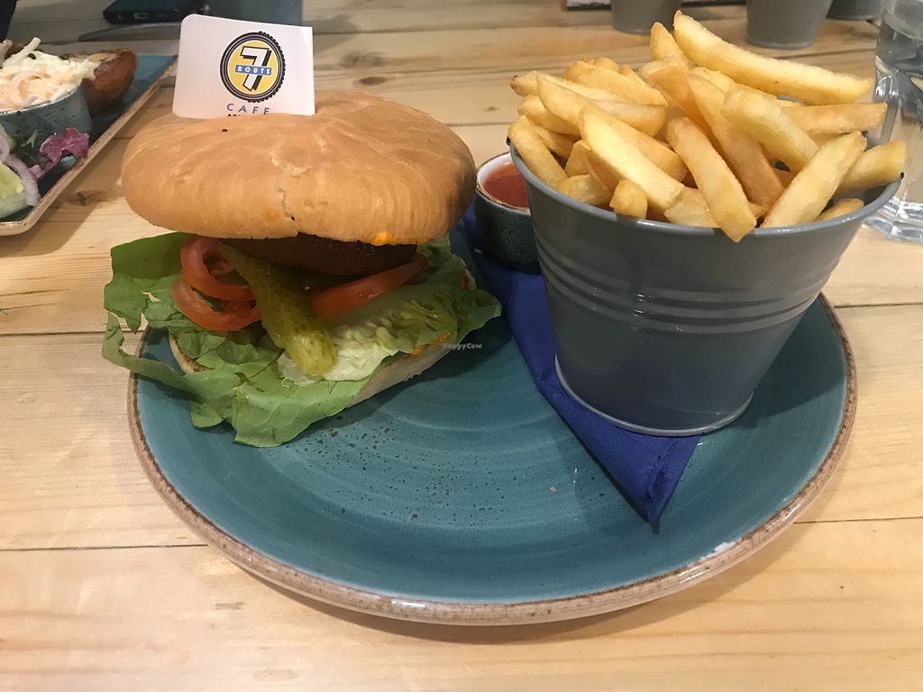 Enjoyed a vegan burger at route 7 which came with all the trimmings. Other options included a veg curry and the soup of the day