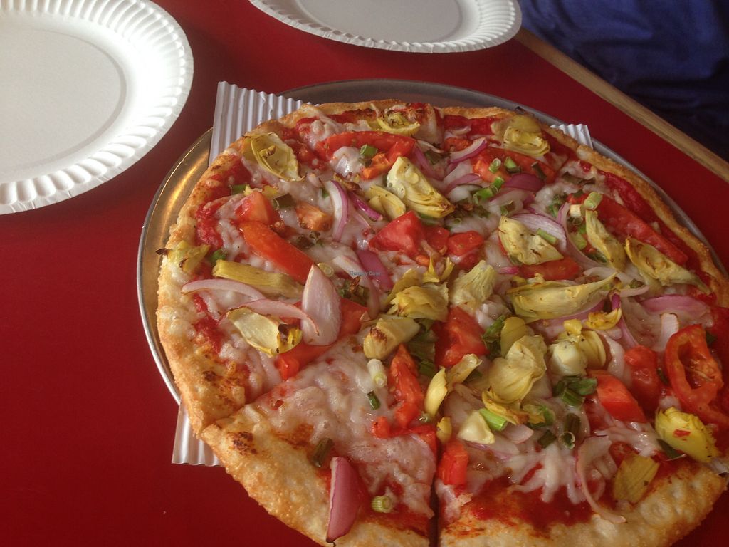 After going here, I was surprised that this place is even listed on Happy Cow. They appear to only have one vegan menu item, the Hearty Vegan pizza. But I like that they have 3 size options and Daiya cheese. Husband and I shared the medium 12" pizza and it was perfect for us.