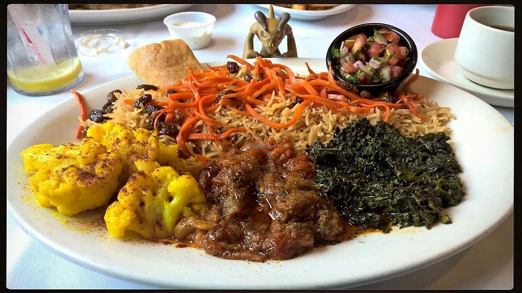 Read moreVegetarian options abound. Three cheese pasta. Penne pasta w a zesty tomato cream sauce. Almost all the other veggie dishes are vegan or can be veganized. The Roxana Vegetarian Plate is a sampler of veggie dishes (spinach, eggplant, cauliflower). Pan seared roasted eggplant. Vegetable dumplings. House-made guacamole, hummus, lentil Soup. Vegetable fritters. Delicious salads -spinach, Mediterranean & the Balela (chickpeas, kidney beans, tomatoes, onions, cilantro, jalapeños).