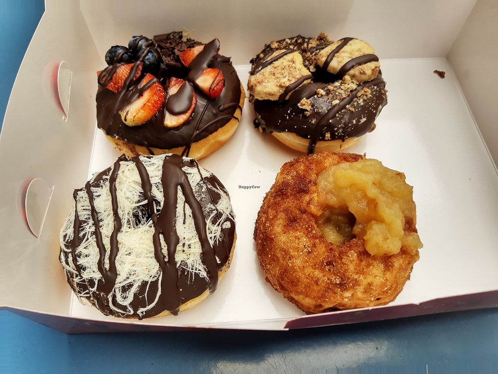 I tried three of the donuts from their vegan section and they were perfectly fine, just not great, because of the donuts in the vegan section had no fillings. However some of the cronuts outside the the vegan section are vegan, too (blueberry, apple compote, strawberry and raspberry). I tried the apple one, which was the only one available at the time, and it was excellent - the filling added what was missing from the normal donuts.