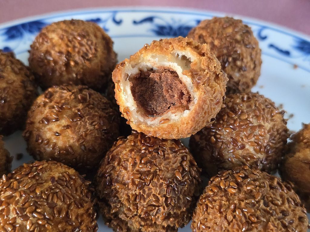 Red bean paste inside sesame ball dessert