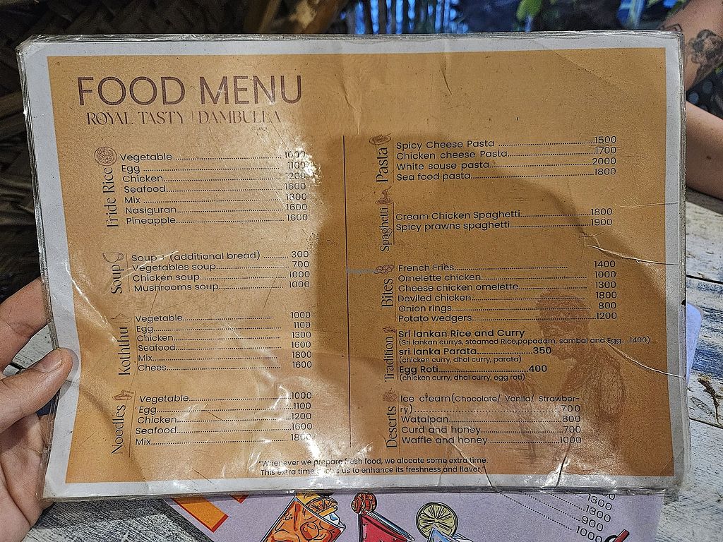 Not loads of veggie or vegan options. Even the vegetable koththu had chicken gravy in!