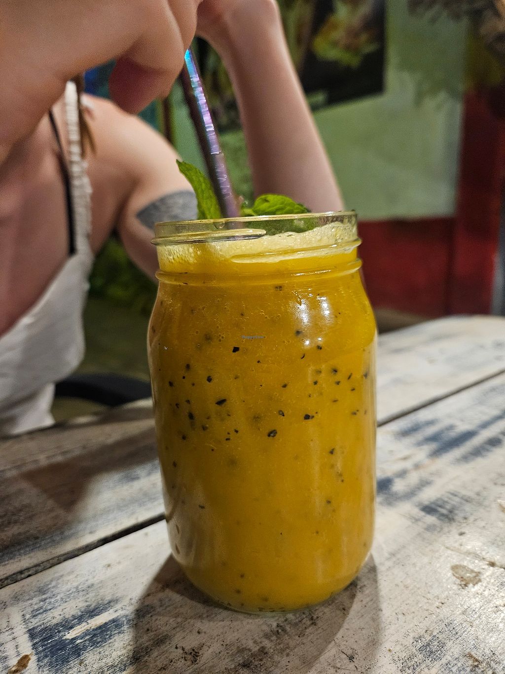 The cafe is no longer vegetarian but the food is really yummy! We had the best fresh juice we ever had so far in Sri Lanka and my Tropical bowl was amazing! Delicious! I also had an Ice latte and asked for coconut milk. It was good!