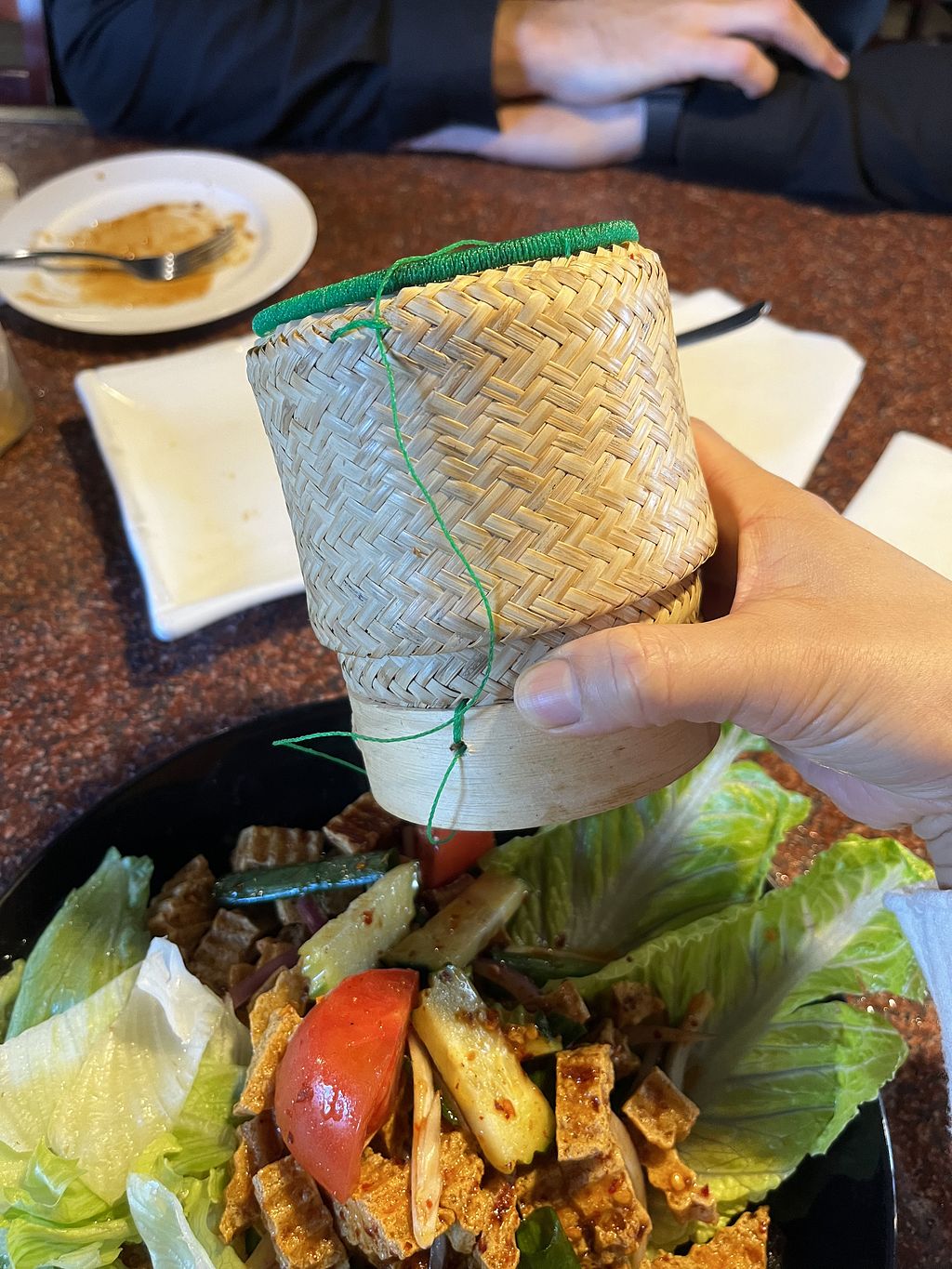 There are lots of vegan options. Unfortunately, they're not marked on the menu but the staff was very knowledgeable pointing out what can be made vegan. We ordered veggie gyoza, spicy eggplant (from the vegetarian section of the menu), and vegan pad woon sen with extra veggies. Also mango sticky rice for dessert which was absolutely cute and tasty. This is my new favorite restaurant in town and will be back many many times!