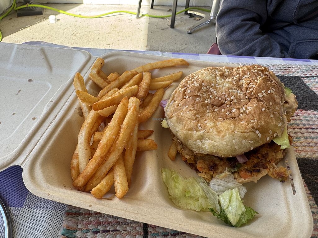 American Vegan food truck offering sandwiches, burgers and 'egg' rolls. Please note that hours & location might vary - refer to socials. More