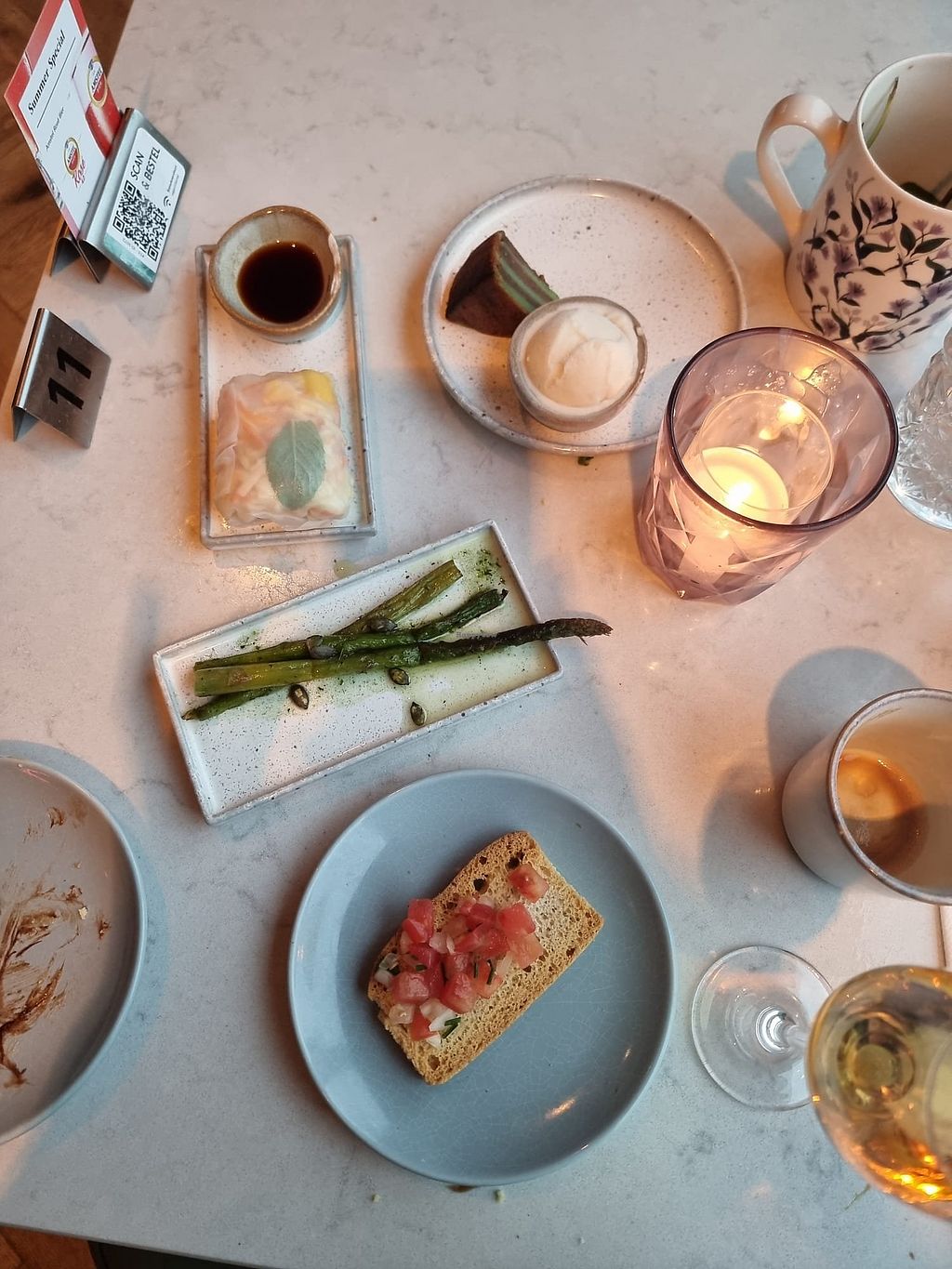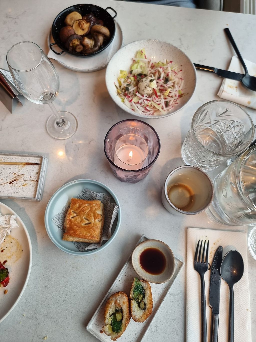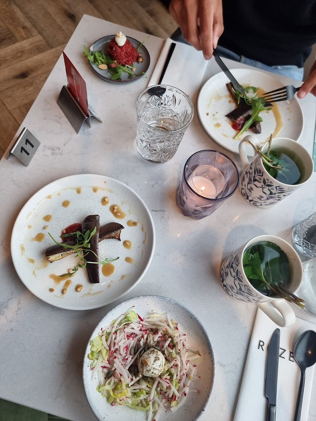 Cold aubergine dish, celeriac carpaccio in the background