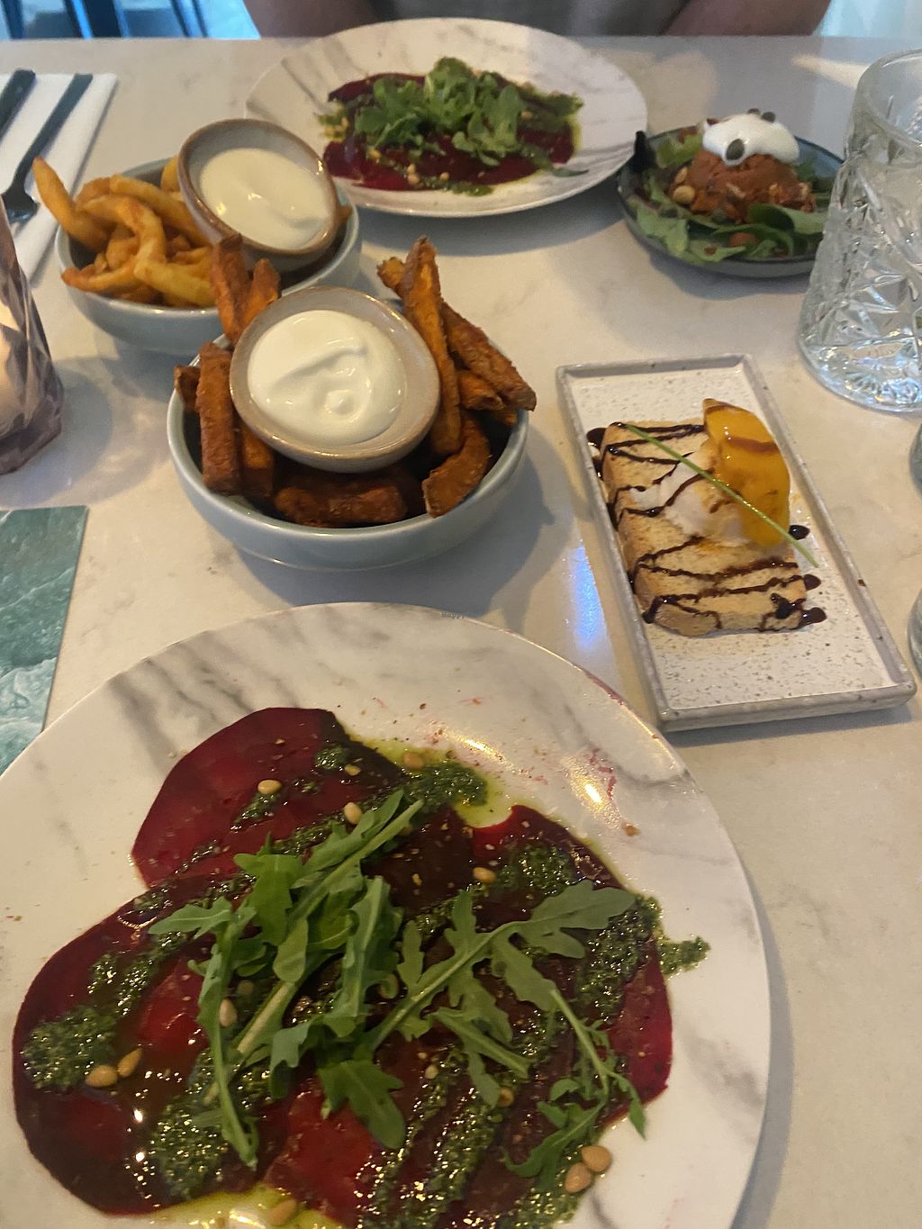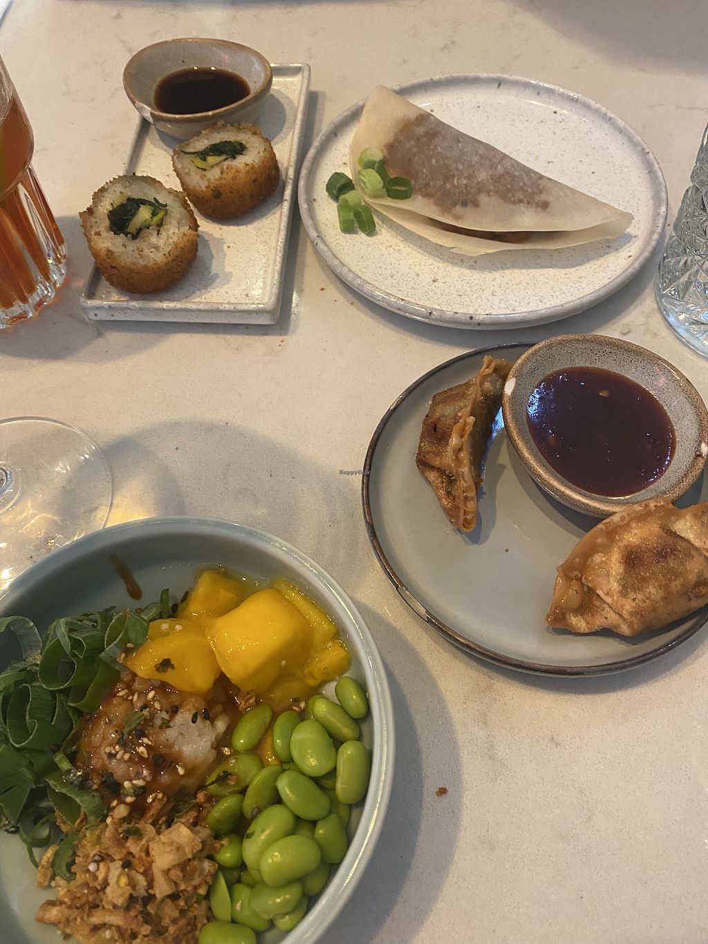 Almost everything is vegan besides a few dishes. And they are all soooo good!!! Definitely go here if you like tapas. They have so many different choices, like a mini burger, gyoza, steak tartare, crispy sushi roll, pokebowl, cheese croquettes, beetroot carpaccio, and so many more!