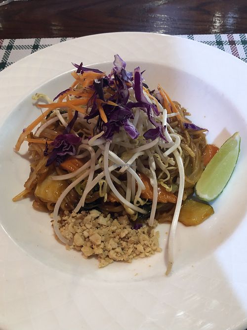 Really needed some tofu in my life so happy to have some vegan drunken noodles with tofu, veggies and rice noodles. The vegan options aren't really marked on the menu but the staff knows what veganism is.