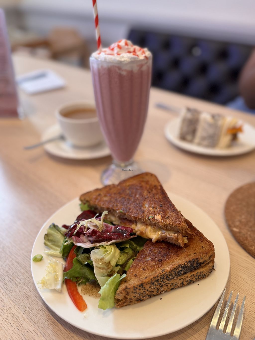 Coronation chickpea sandwich, salted caramel chocolate cake, Charitea …