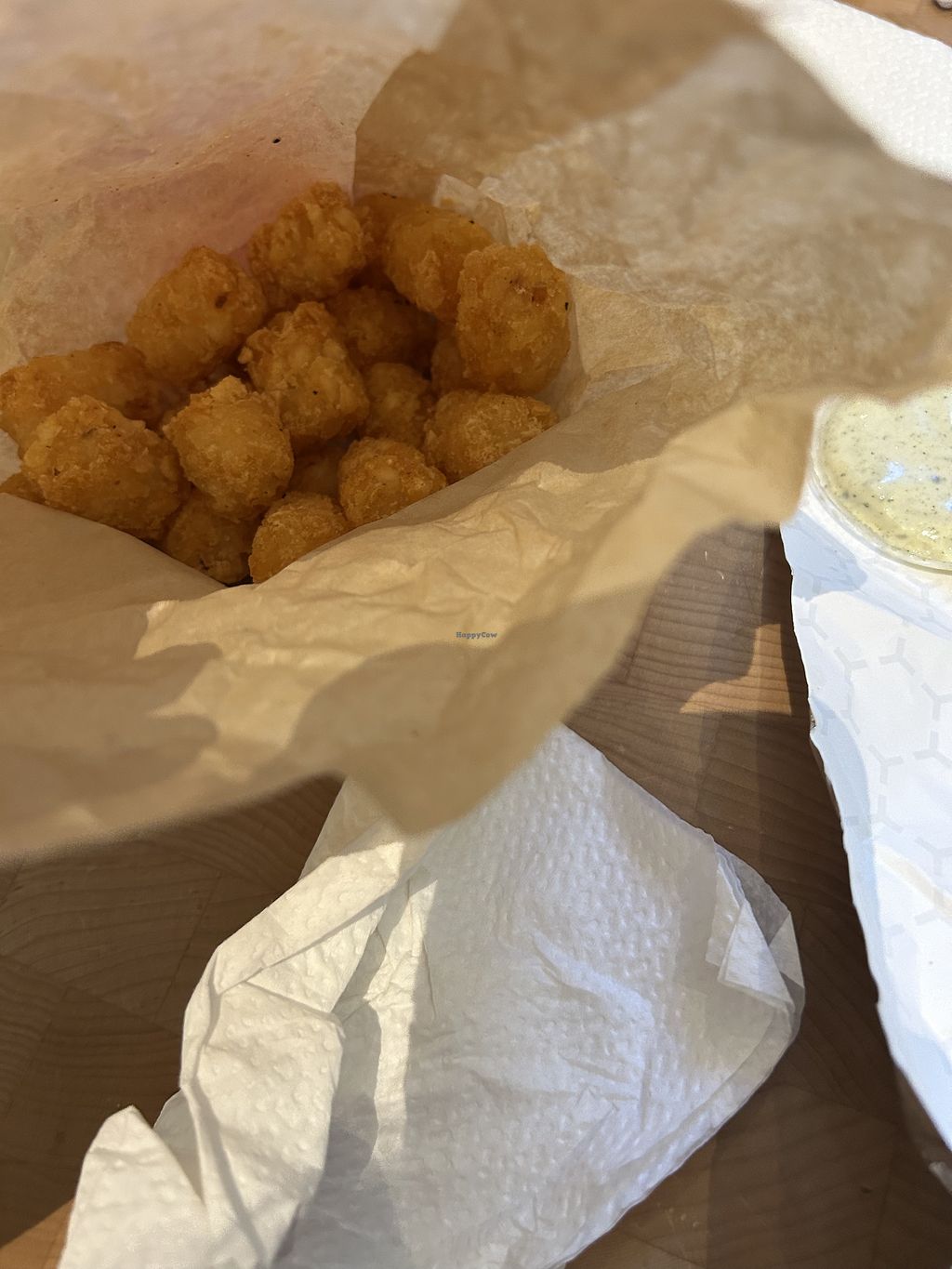 Ordered lunch here and got the chicken sandwich. I love that it’s a fully vegan place! My non-vegan coworker also ordered and liked the sandwich too! The tater tots were perfect and so crispy, even after the DoorDash ride ! Ranch was really good too! #Veganuary
