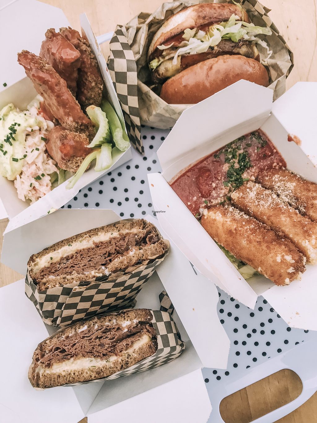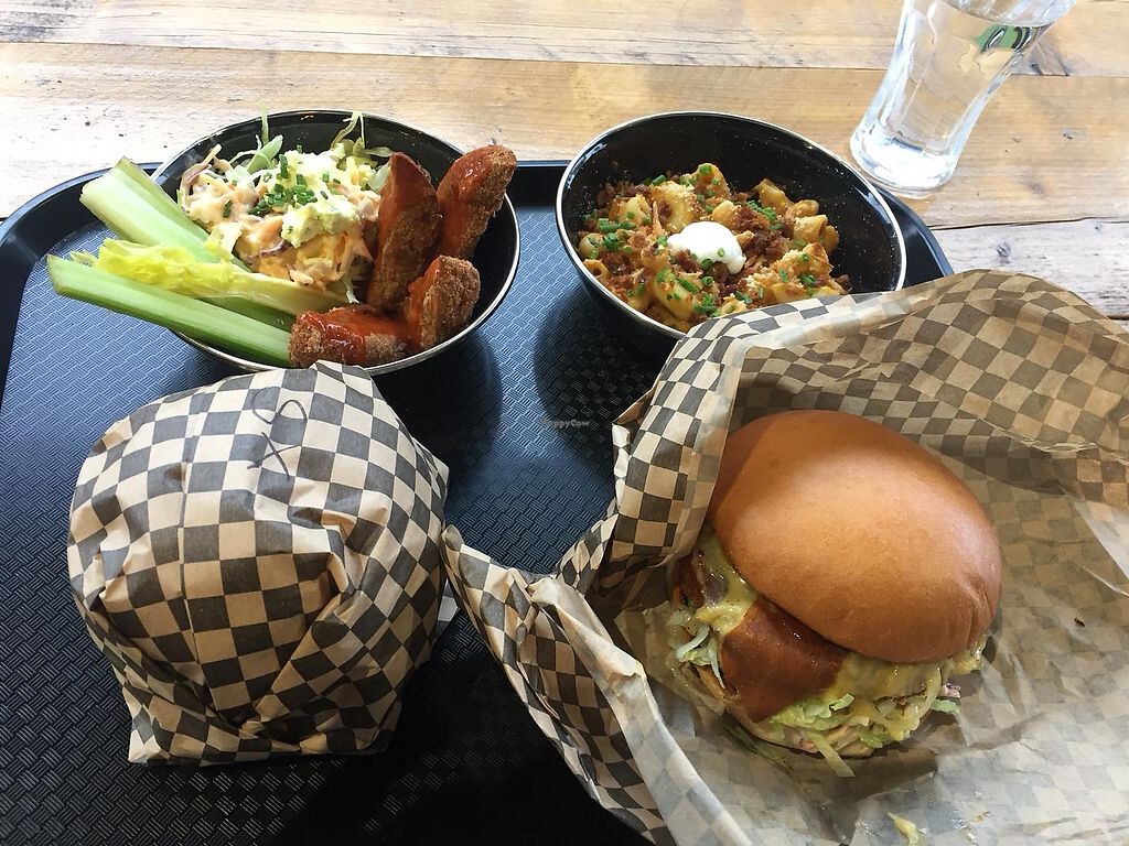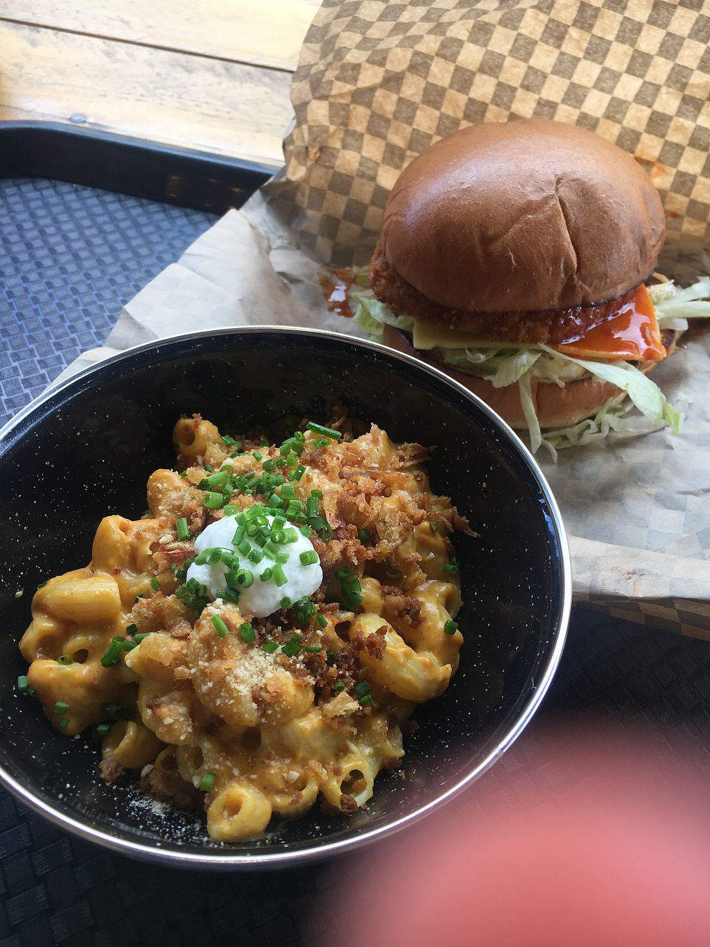 Mac cheese and buffalo burger. All vegan :)