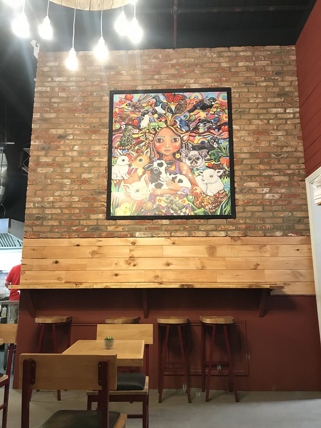 Beautiful vegan painting inside the diner.