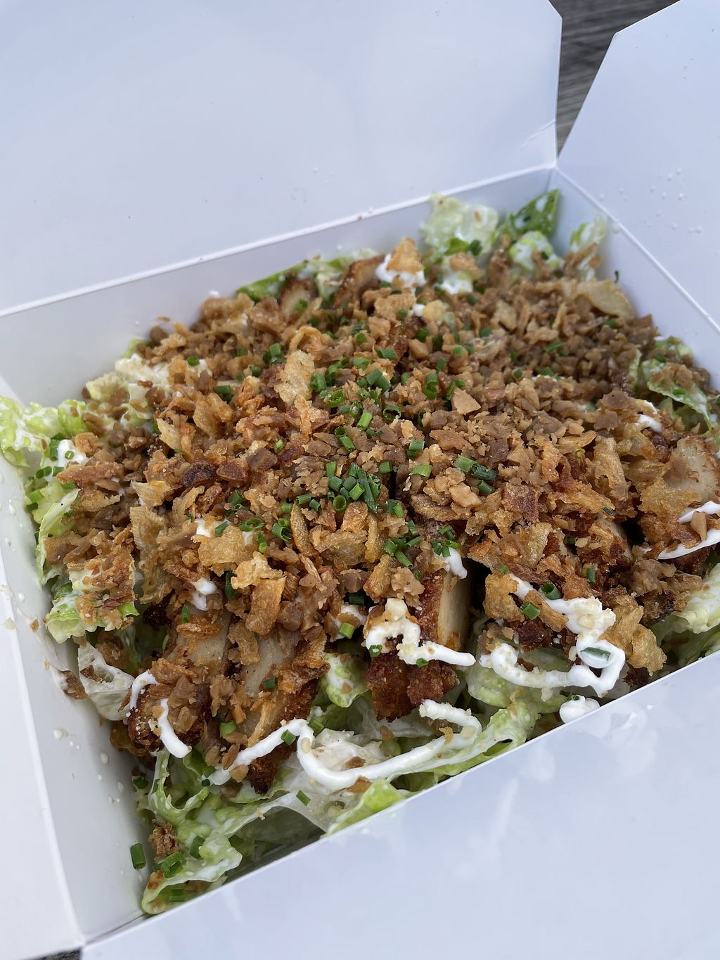 Reuben, mozzarella sticks, buffalo wings and Cesar salad