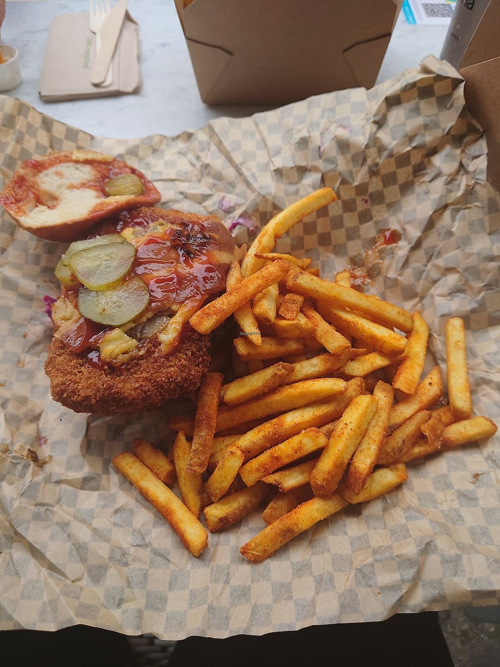 Chicken burger, popcorn chicken, Mac and cheese, mozzarella bites