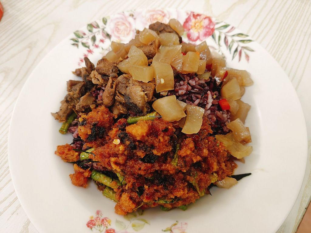 It is a nice place to try local Thai cuisine. The price is very reasonable. Note that some dishes have quite strong flavor. It would be good to ask them about the flavors before choosing. Rice is 10 baht, rice with 1 side is 20 baht, and rice with 2 sides is 30 baht. There are plenty of vegan meats, and snacks that can be purchased as well. Free ice water is also available. The staff was very friendly and helpful. Would recommend.