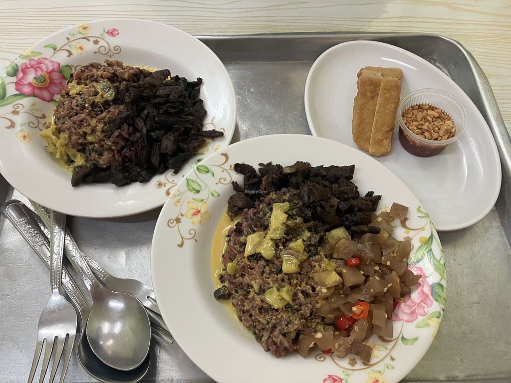 Read moreThe food was incredibly tasty and cheap. A plate costs 35-50 BAHT (around £1). The ladies who were serving the food were helpful in pointing out the vegan options and making recommendations. There is a combination of veggies, meat substitutes, and Curry's as well as menu options. The curry had a mild kick to it.