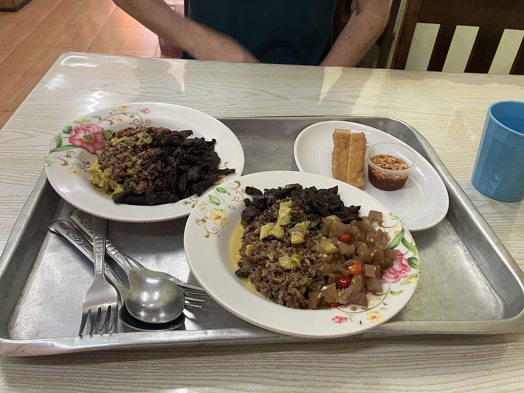 Little local restaurant with super friendly staff. They open quite early and close mid afternoon. They usually have a buffet ready with different options as well as a cook to order menu. We went twice, and everything we had was tasty. All meals are on the cheap side, from 30 to 50 THB. The second time we went, they even offered us a free dessert made with pumpkin and coconut milk (it was soooo good).☺️