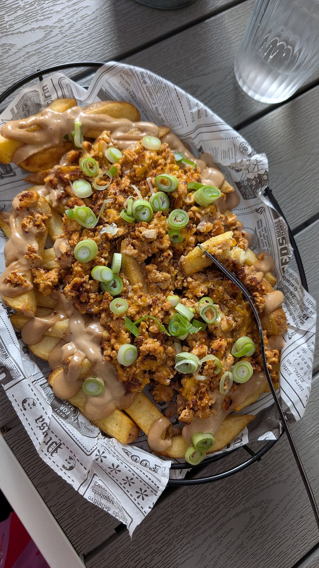 We Had the Fries with smoked Tofu and the parmesan-sauce blew our mind. Amazing… 🫶🏻