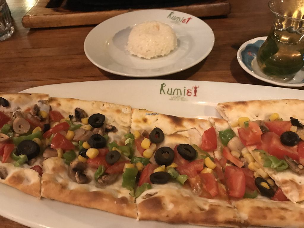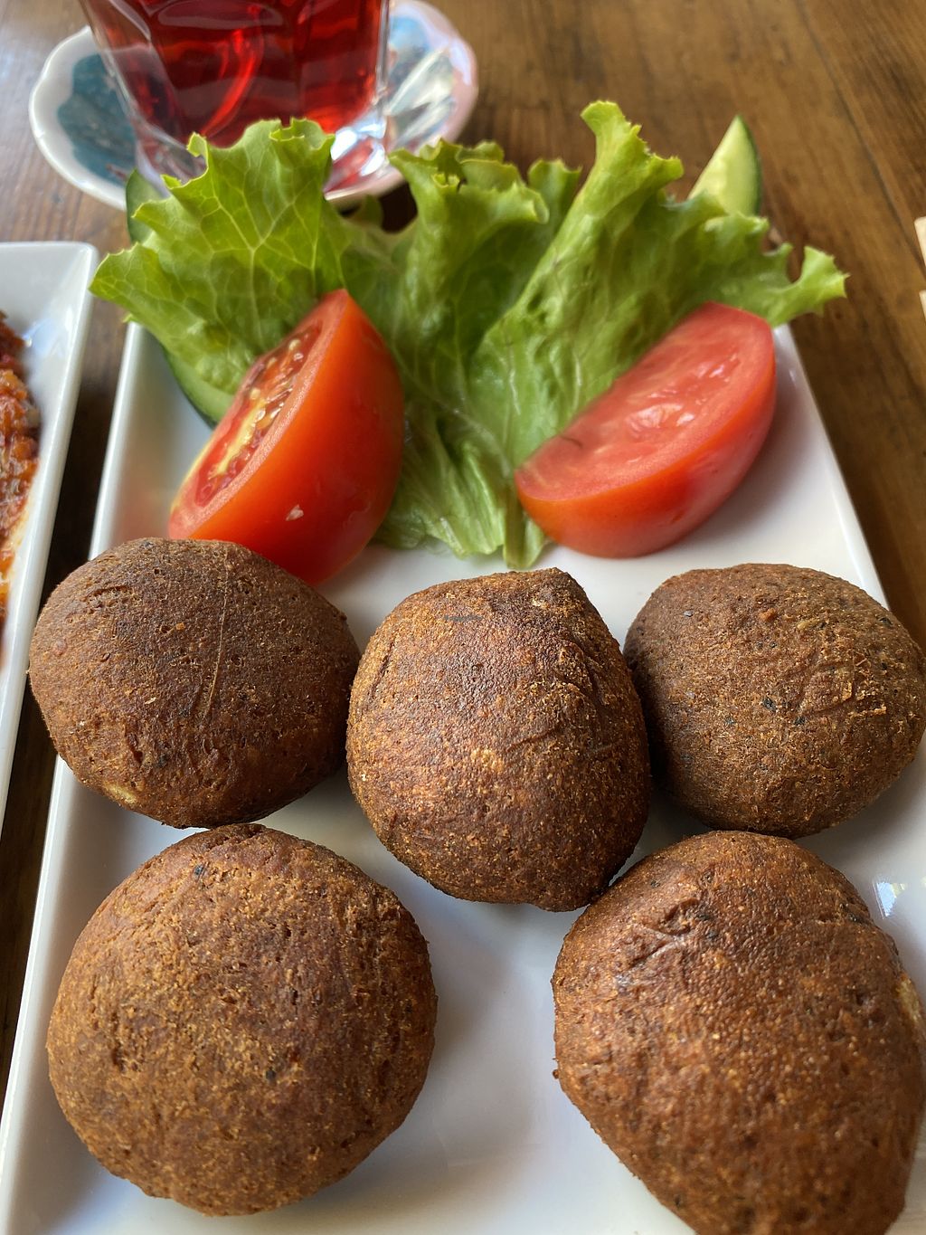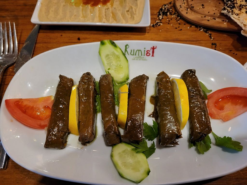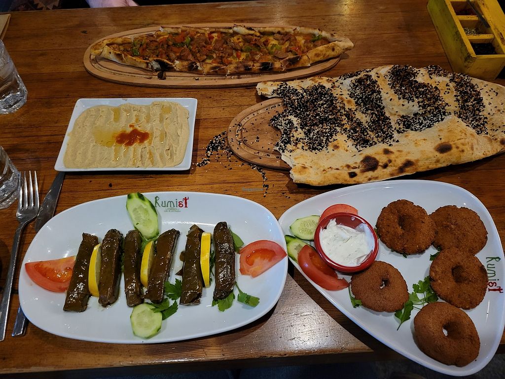 Grape leaves, falafel, hummus, bread, and pide (not vegan, but vegetar…