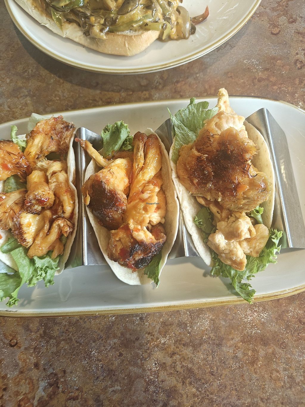 Read moreVegan lions mane tacos: the lions Mane was actually cooked really well, but it was just smothered in sweet chili sauce that normally goes on coconut shrimp.