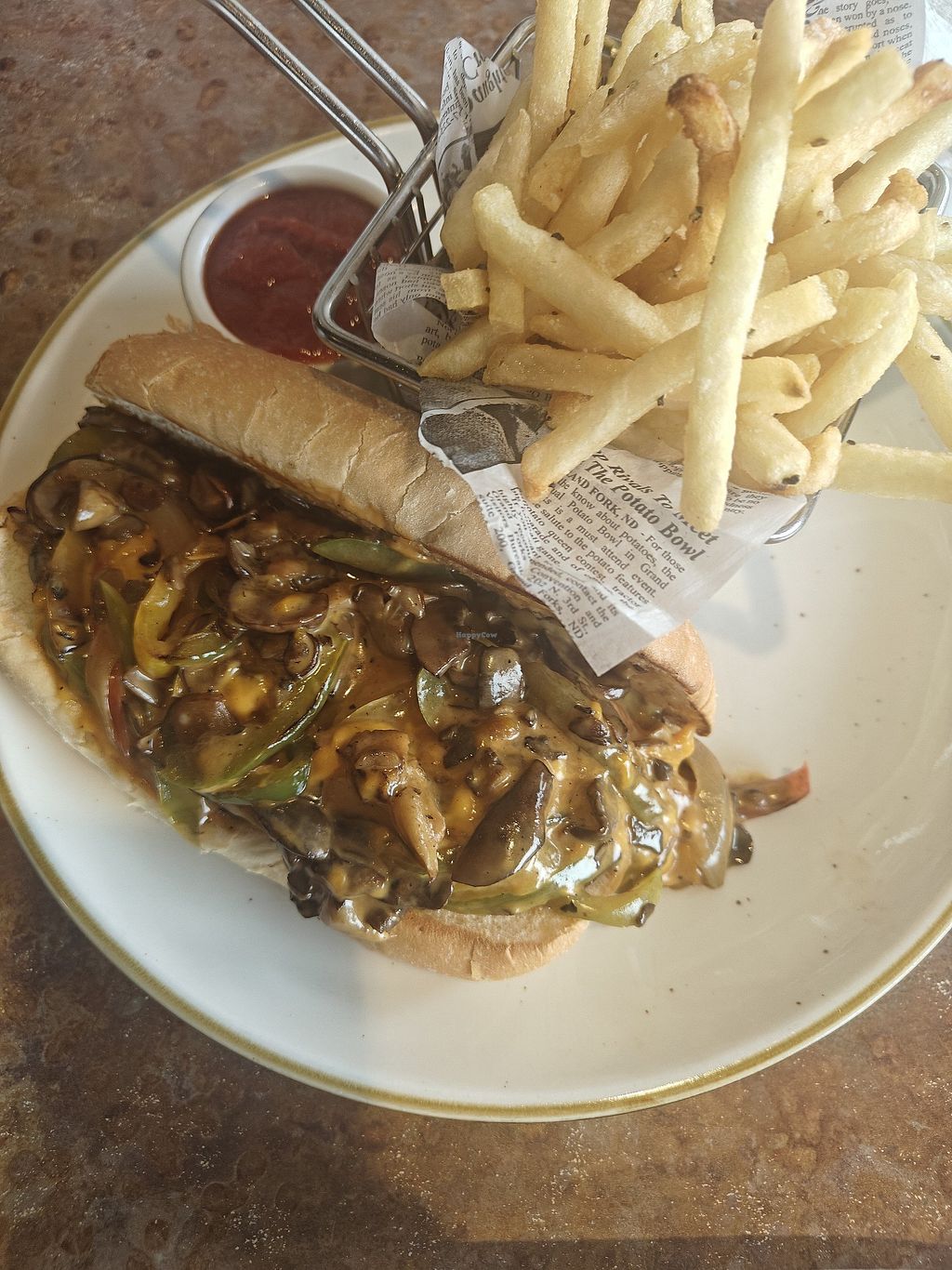 Vegan philly cheesteak was yummy, but menu says oyster mushrooms and vegan mozzarella...however, we had just a bunch of standard portobellas chopped up with what I think was credo vegan cheese. The peppers and onions were cooked nicely.