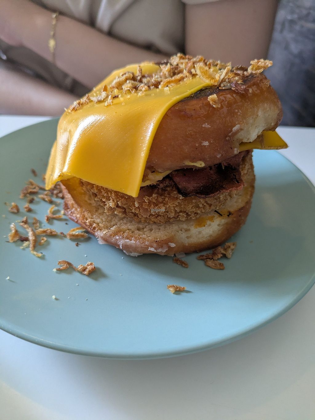 Read moreLa comida deliciosa, el bacon es de lo mejor sin hablar del donut que es 🔝. Tal vez el precio está un poco elevado, el resto es genial.