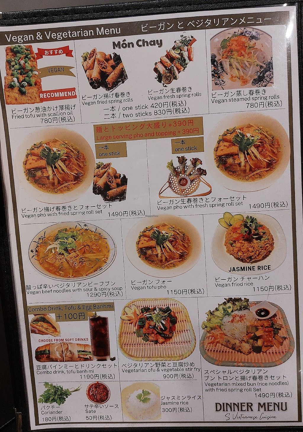 We Really enjoyed our stay at S Vietnamese Cuisine. There is an extra page for vegetarian options like Pho, fried rice and bahnmi. One of the best vegetarian food places we visited in Kyoto.