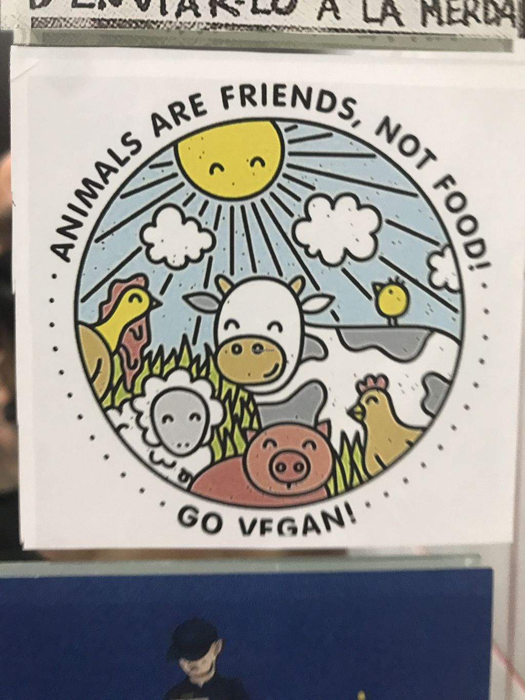 Comimos de menú del día por 15€ (pan, postre y bebida incluidos). Todas las opciones son veganas y están ricas. El local es amplio y tiene una sección de librería y camisetas antiespecistas.