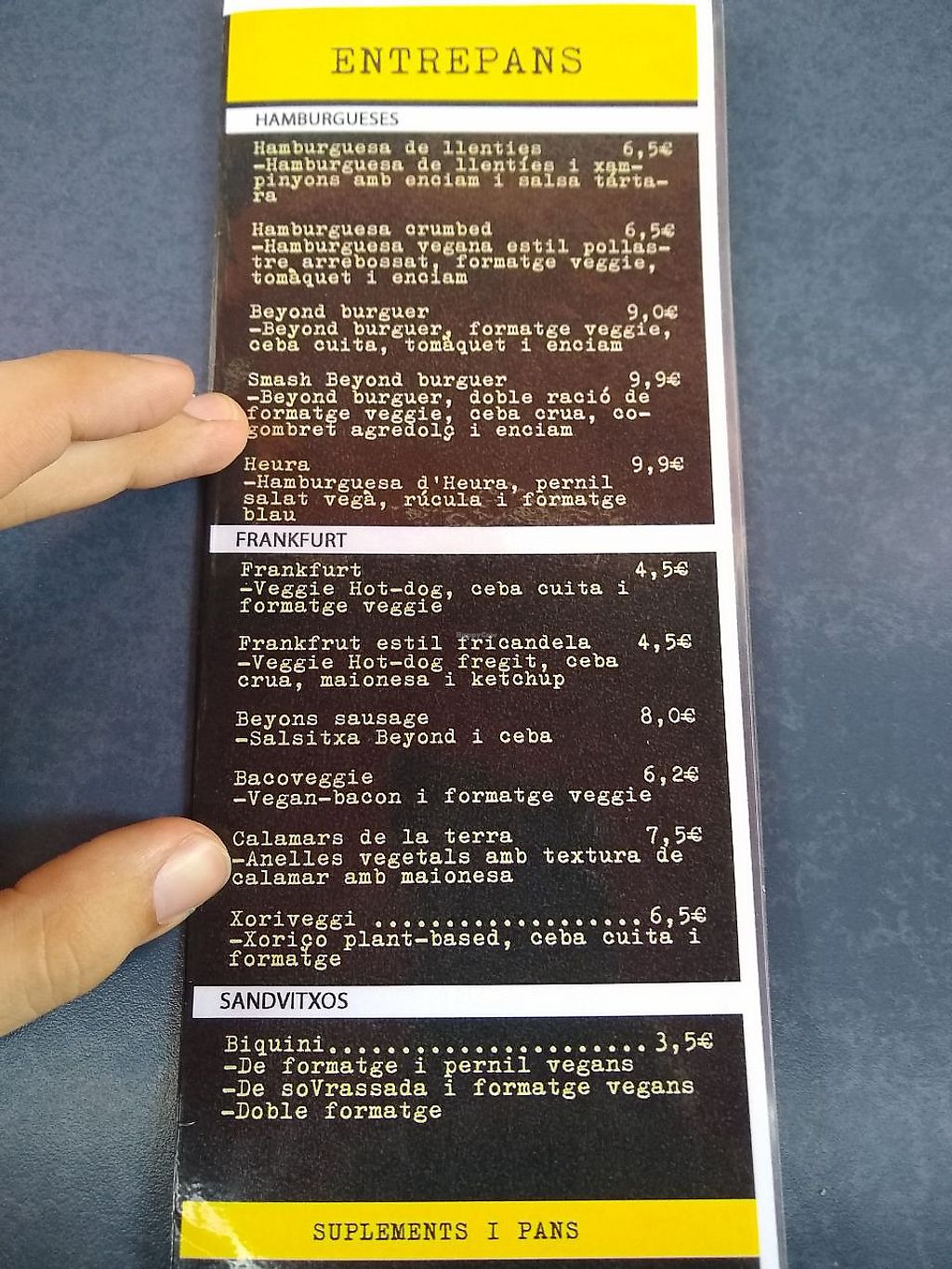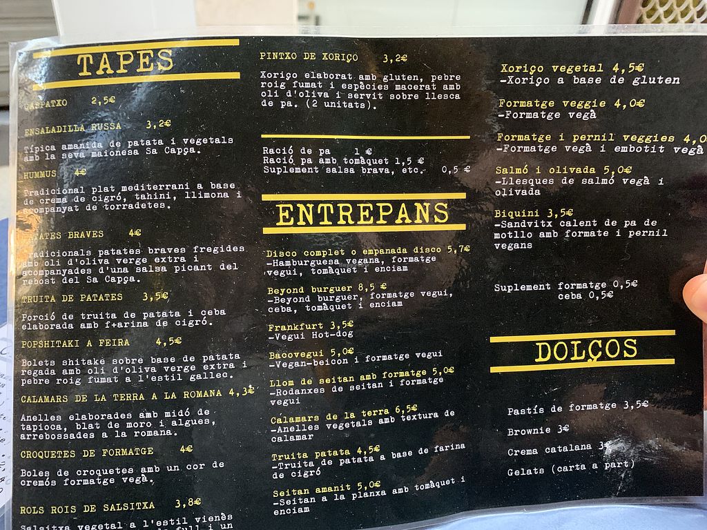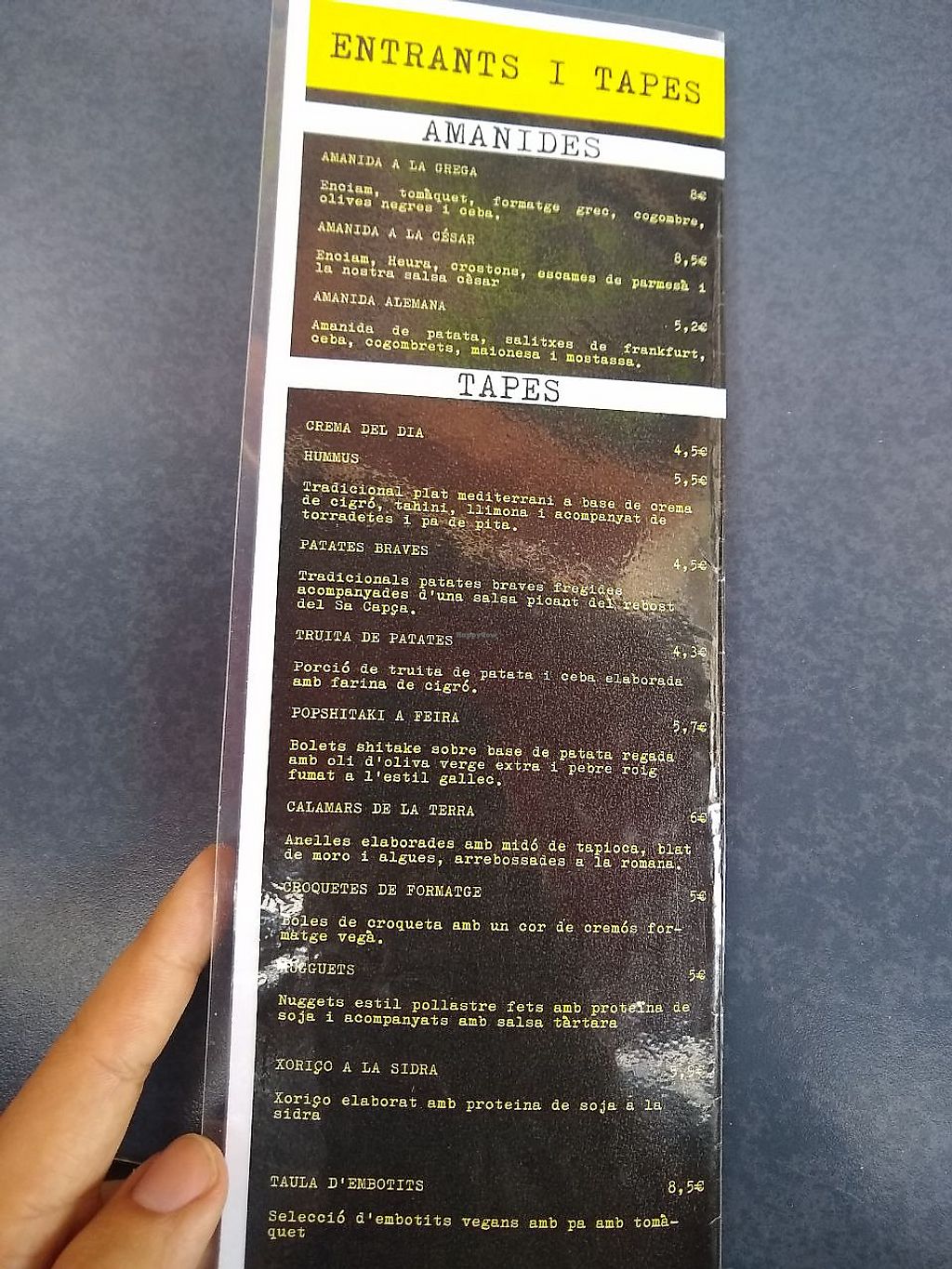 At first it looks like a very "vegan activist" Catalan bar in a side street. We arrived at lunch, that starts at 1pm, and ordered the menu of the day. And it was absolutely amazing. Very creative, subtle and delicious flavors, a few options to chose from and the carrot cake at the end was absolutely worth it. They have a few tables outside too. Everything is in Catalan so bring a translate app or just let yourself be surprised, staff is not fluent in English, but very friendly.