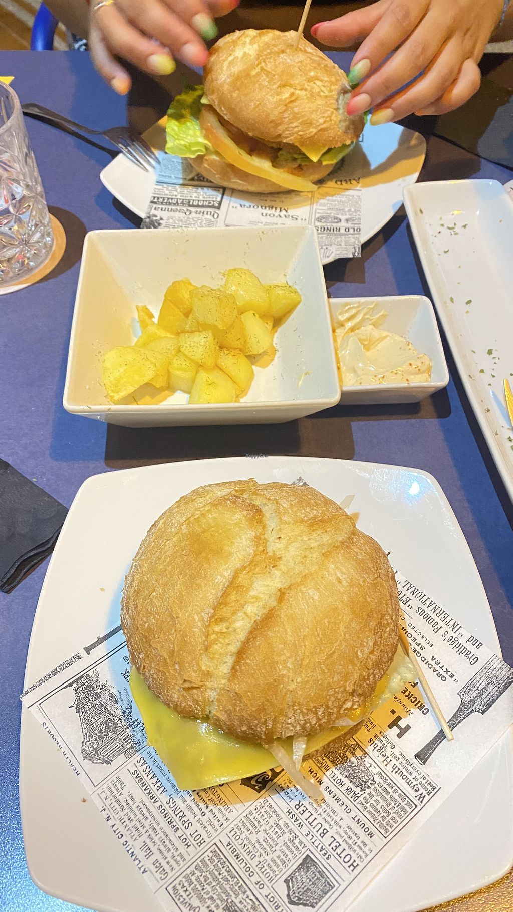 El restaurante nos gustó mucho. La calidad de la comida está bien pedimos, aros de calamares, bravas, no pulpo a la feria y croquetas de queso. También pedimos los postres del menú, que en ese caso fueron tarta de chocolates, tarta de manzana y panacotta. Estaba todo muy bueno excepto la panacotta, que la verdad tenía una confitura que hacia que no supiese a panacotta.
