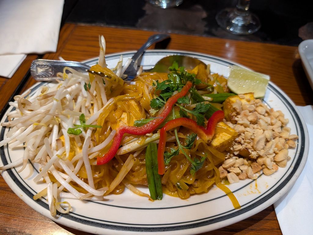 My second time here in as many years, while in town for a conference. It’s very close to the convention center. Lots of vegan meals and apps on the menu. I had the Larb Salad which was very tasty, although it had a huge single piece of lettuce as a base, which I couldn’t eat (no knife or ambition to deal with it). It just got in the way. For main, I had the Vegan Pad Thai which was a bit disappointing itself in terms of flavor and the fact that the rice noodles were largely stuck together and most I had to saw apart with a spoon. Maybe an off night as last year I had a great meal here.