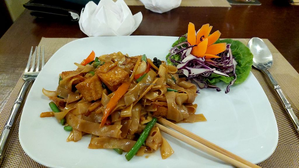 Serves meat, vegan options available. Thai restaurant offering curry and wok dishes. Various dishes are marked as vegetarian and can be ordered vegan upon request, such as pad thai with tofu, pad kie mao with tofu, and pad sie lew with vegetables. Open Mon-Tue 05:00-10:00, Thu-Fri 05:00-10:00, Sat-Sun 12:00-03:00. Closed Wed.