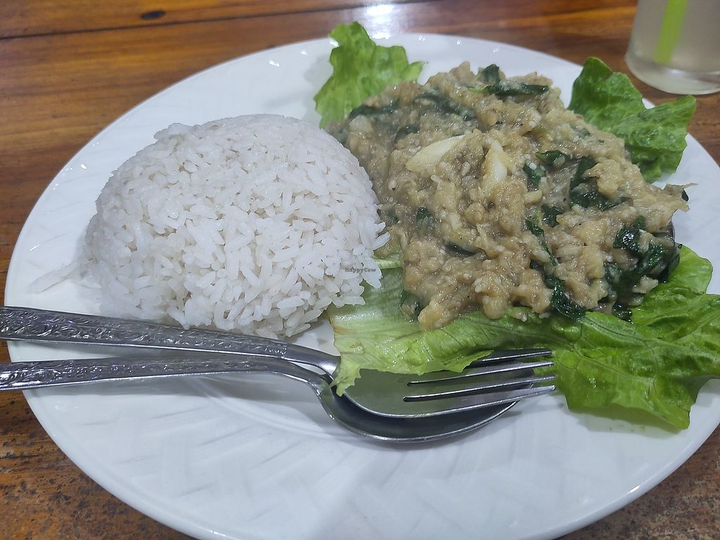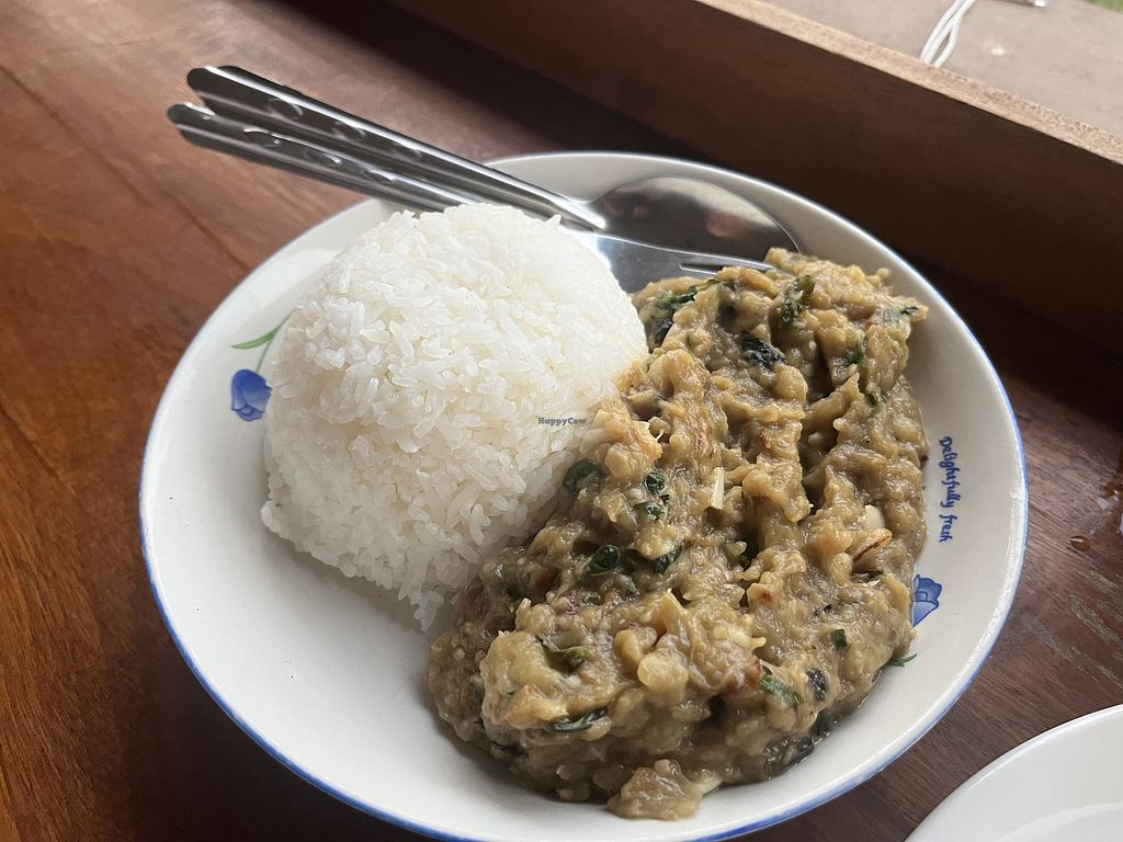Smashed aubergine with rice