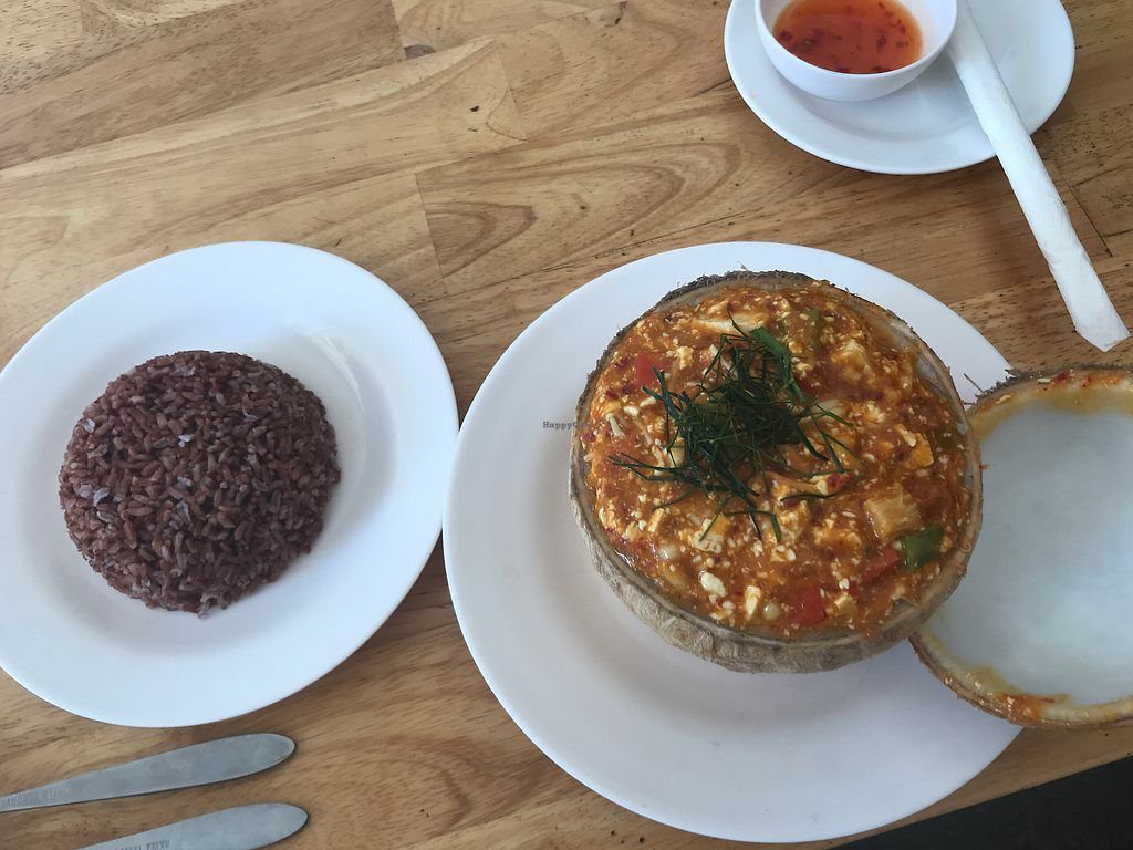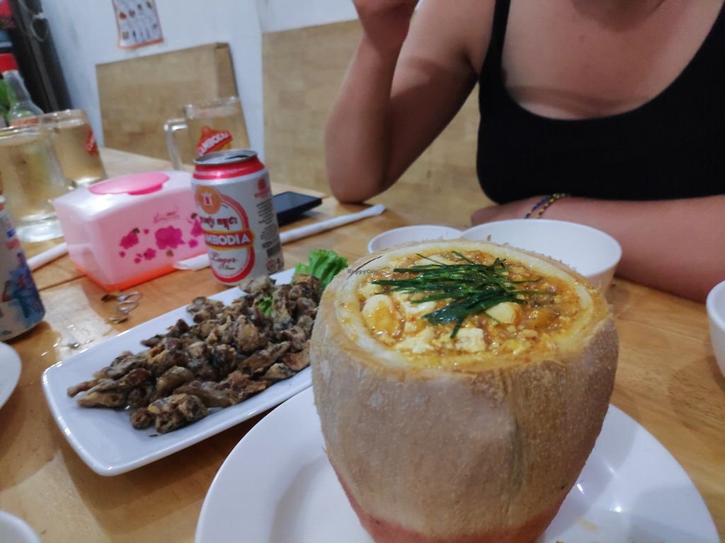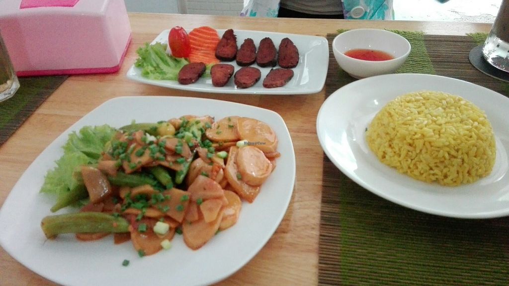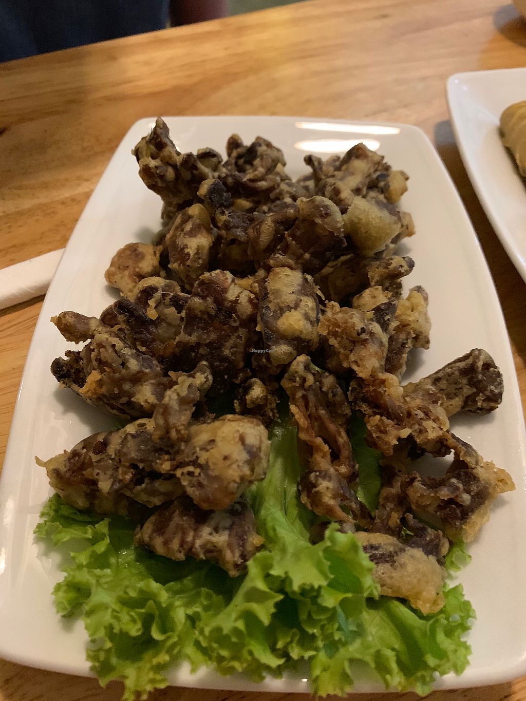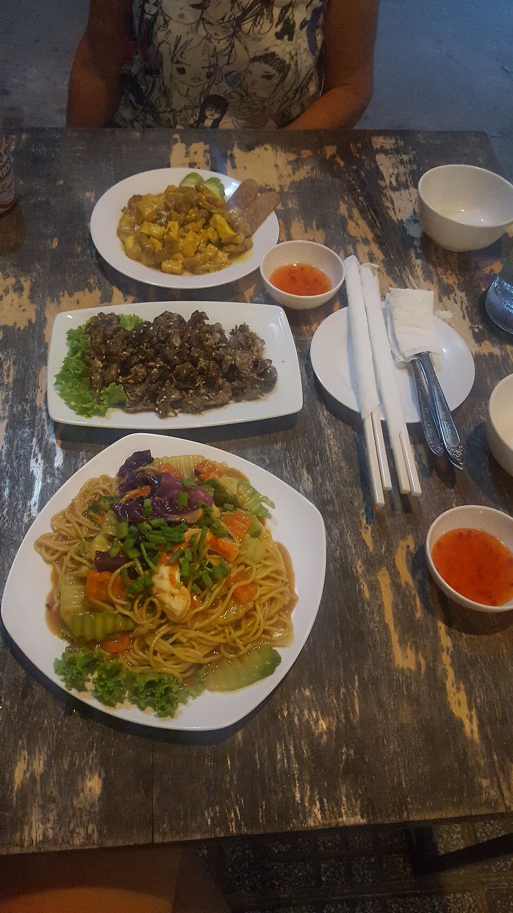 Spaghetti, tempé aux curcuma et champignon en tempura