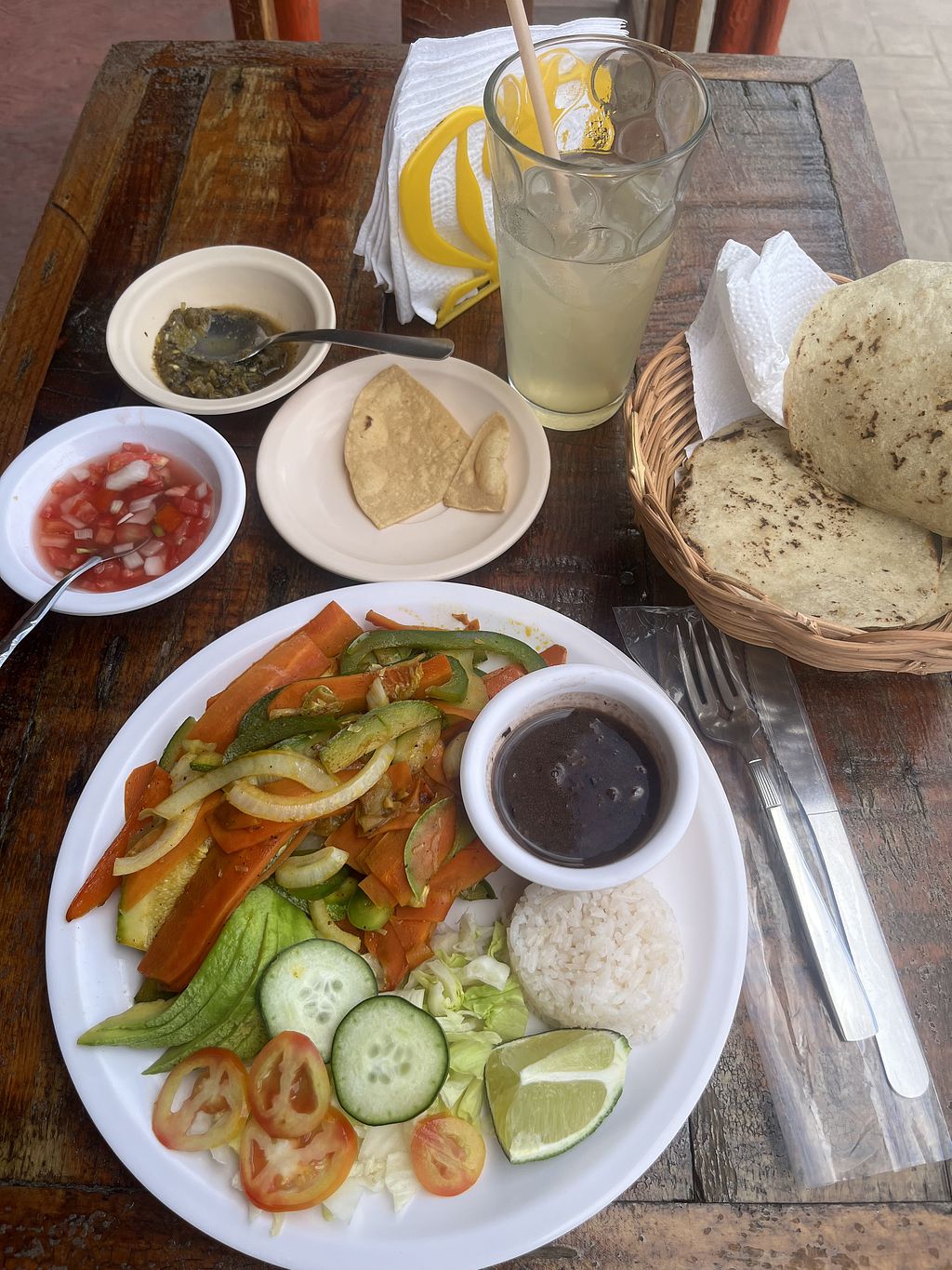 Inconspicuous restaurant in a village just outside Chichen Itza. There is a small menu with typical Mexican dishes. The dishes listed as vegetarian are vegan. There are fajitas and guacamole, which I can highly recommend. I didn't try the tacos. Jamaica tea and lemonade were also above average. According to the owner, the food, tortillas and drinks were all homemade. So if you're travelling through, make sure you stop here for a bite to eat. I have not found more authentic cuisine in my time in Mexico.