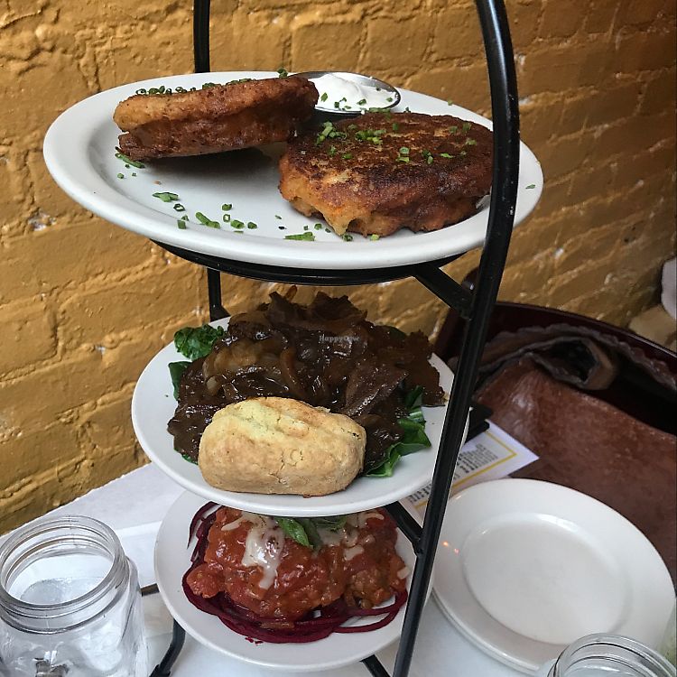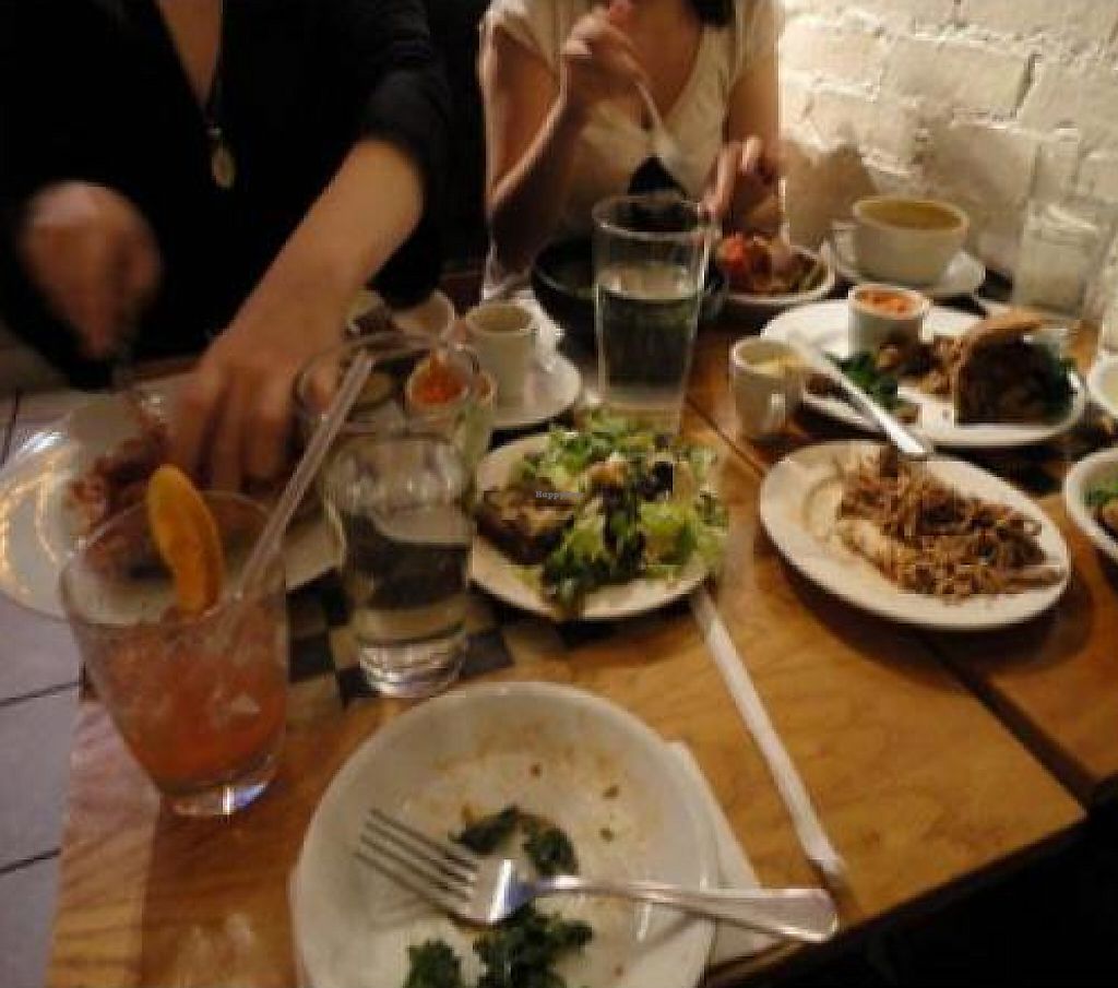 We had the best meal here when we arrived in NY. We had the kale salad with tofu (one of the best things we had our whole trip), and the three sampler plates. It was so fun and so good. We probably like the tempeh with kraut best. The black olive seitan was too salty for us so we would not order that again. We can't wait to go back.