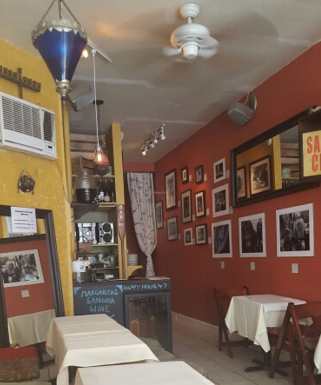 We chose a selection of tapas: eggplant rollatini, grilled nama gori, tempeh, seaside nori bits, black olive seitan and the special brussels sprouts. They were quite interesting. The nama gori has a distinct texture from having been frozen (and which we've unintentionally replicate when we cook and then freeze).The nori bits and seitan were especially good. Overall, the food was highly salted and many items had a lot of oil. Desserts for us were the ample specials apple blueberry crisp and a maple cheesecake. The room was pleasant.