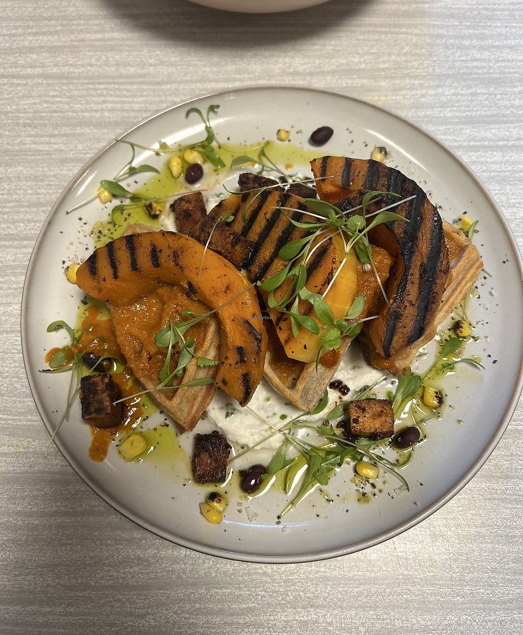 Buckwheat Waffles with roasted squashh